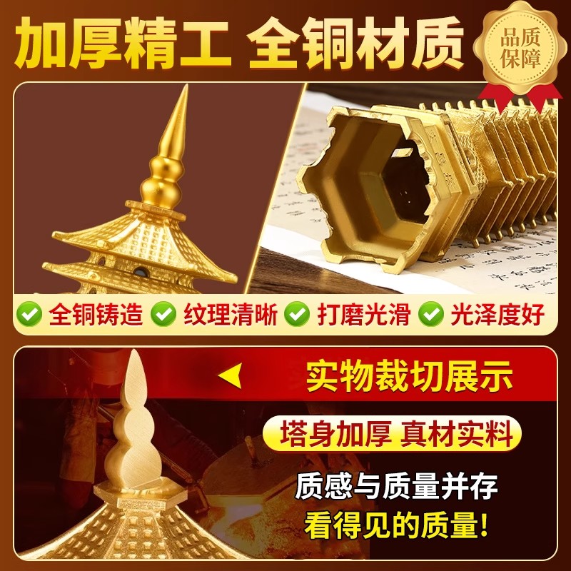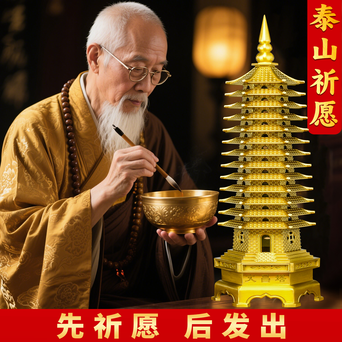 纯黄铜文昌塔摆件13层9层旗舰店十三层九层书房客厅办公室工艺品