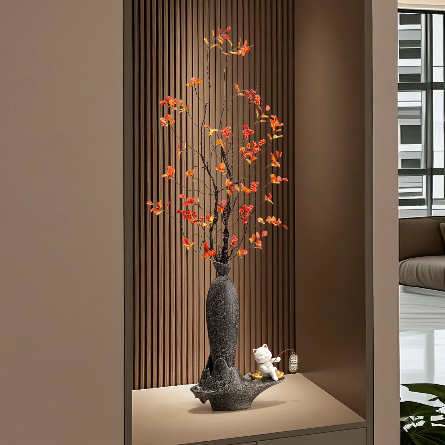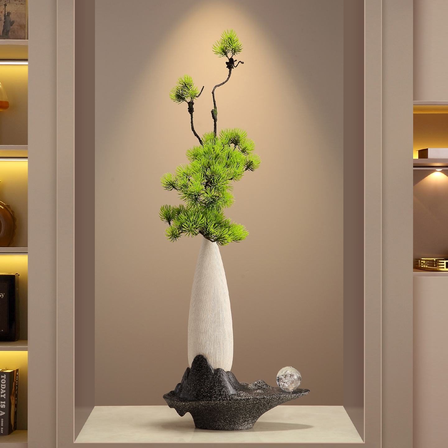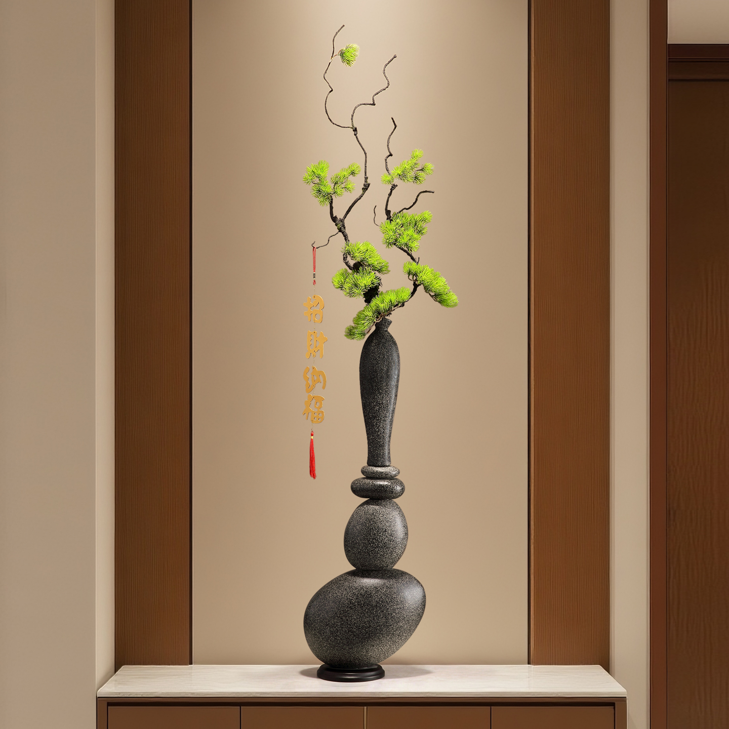 中古意式陶瓷竖长高档花瓶客厅迎客松花艺装饰品入户玄关屏风摆件