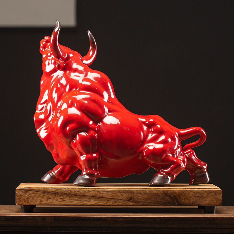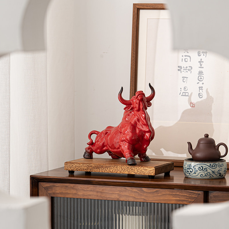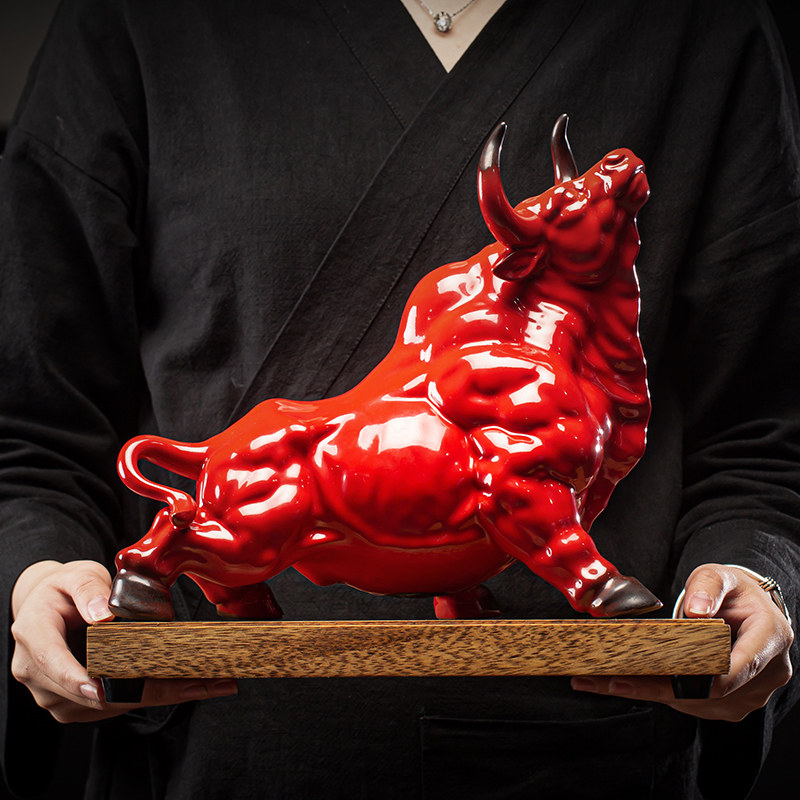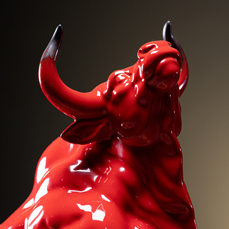 大号红色陶瓷动物牛年摆件办公室桌面装饰品牛气冲天开业定制礼品