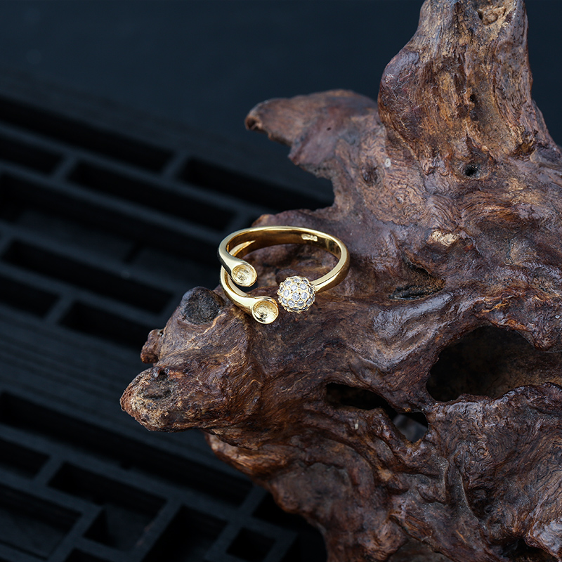 925银蜜蜡戒托纯银戒托绿松石戒指托女开口戒指空托3-6mm圆珠戒托