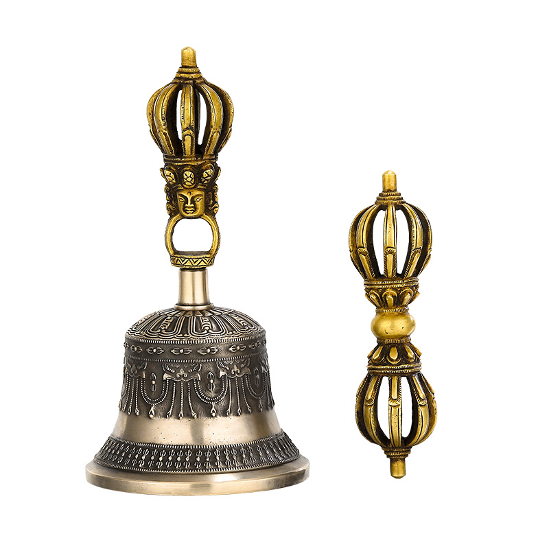 尼泊尔手工九股金刚铃供具用品摇铃响铜铃铛九股金刚铃杵供修