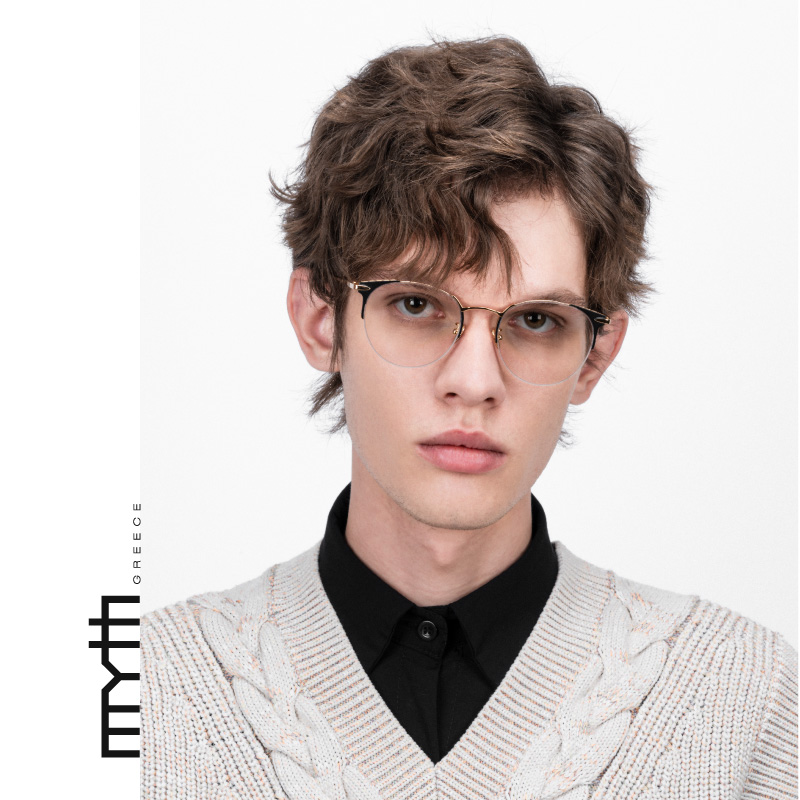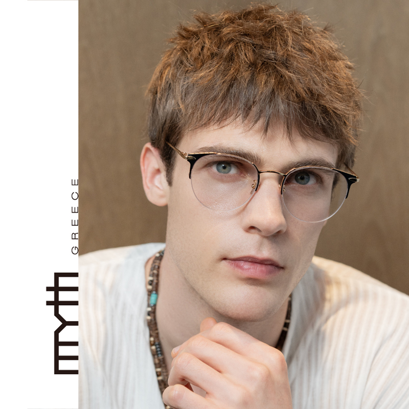 希腊金丝纯钛男潮半框眼睛架超轻超薄可配度数女近视眼镜框防辐射