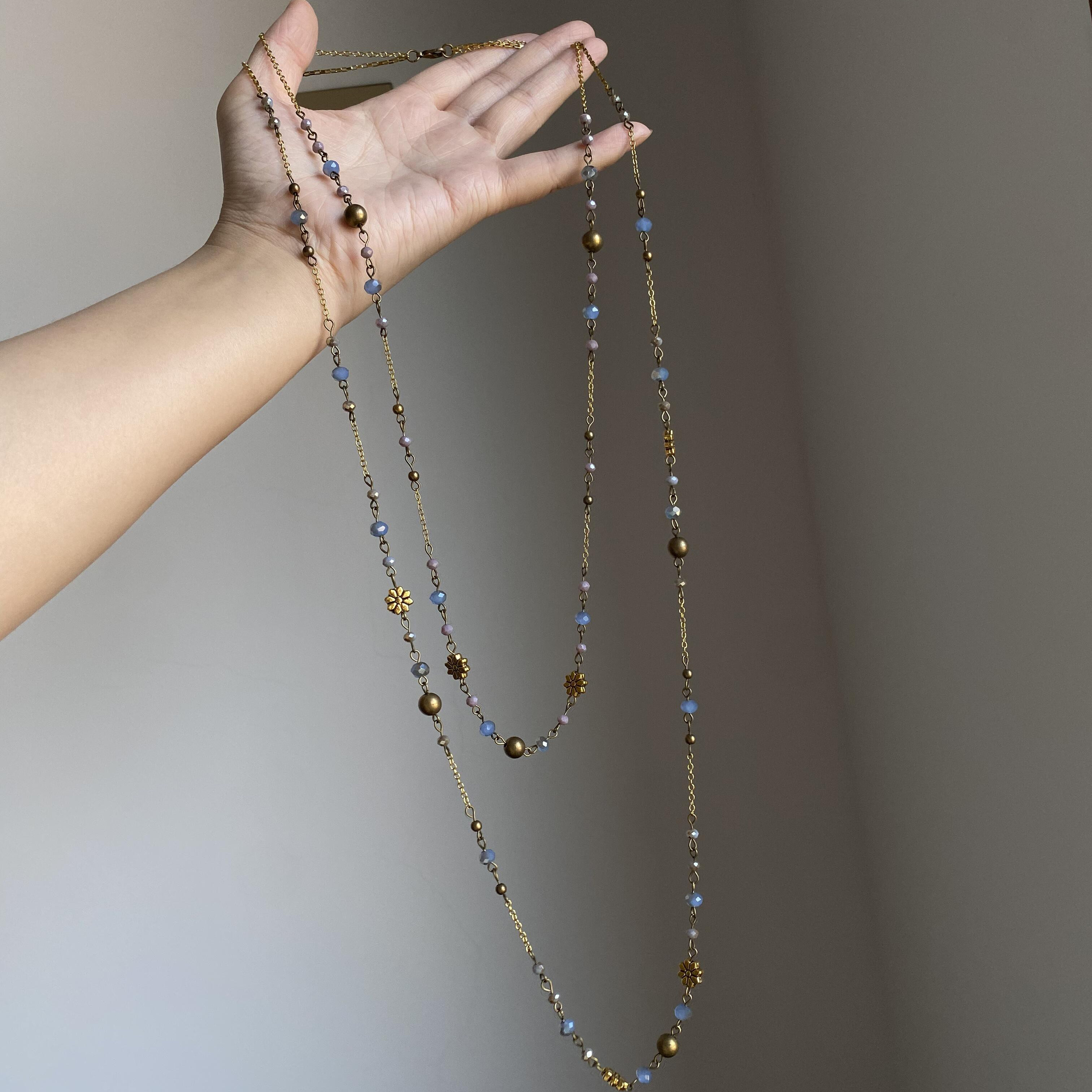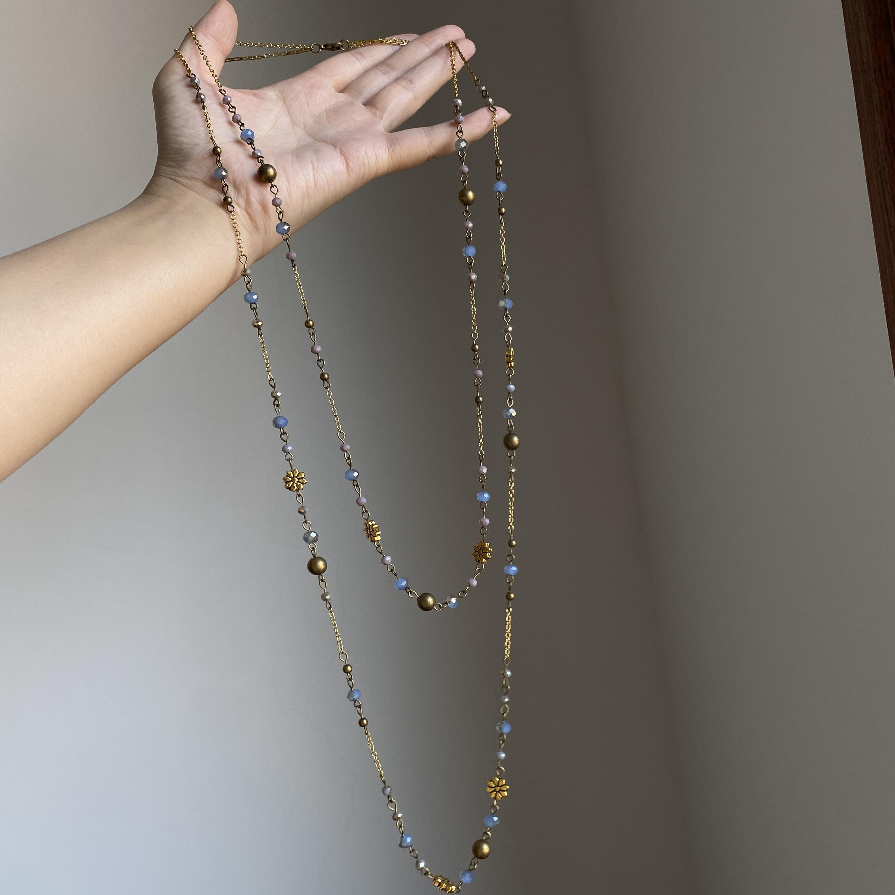 复古做旧雏菊串珠长款项链双层叠戴波西米亚风小众锁骨链辣妹配饰