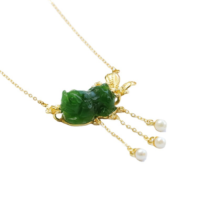鑫澜天然珠宝」 S925银镶天然和田玉吊坠碧玉貔貅项链珠宝