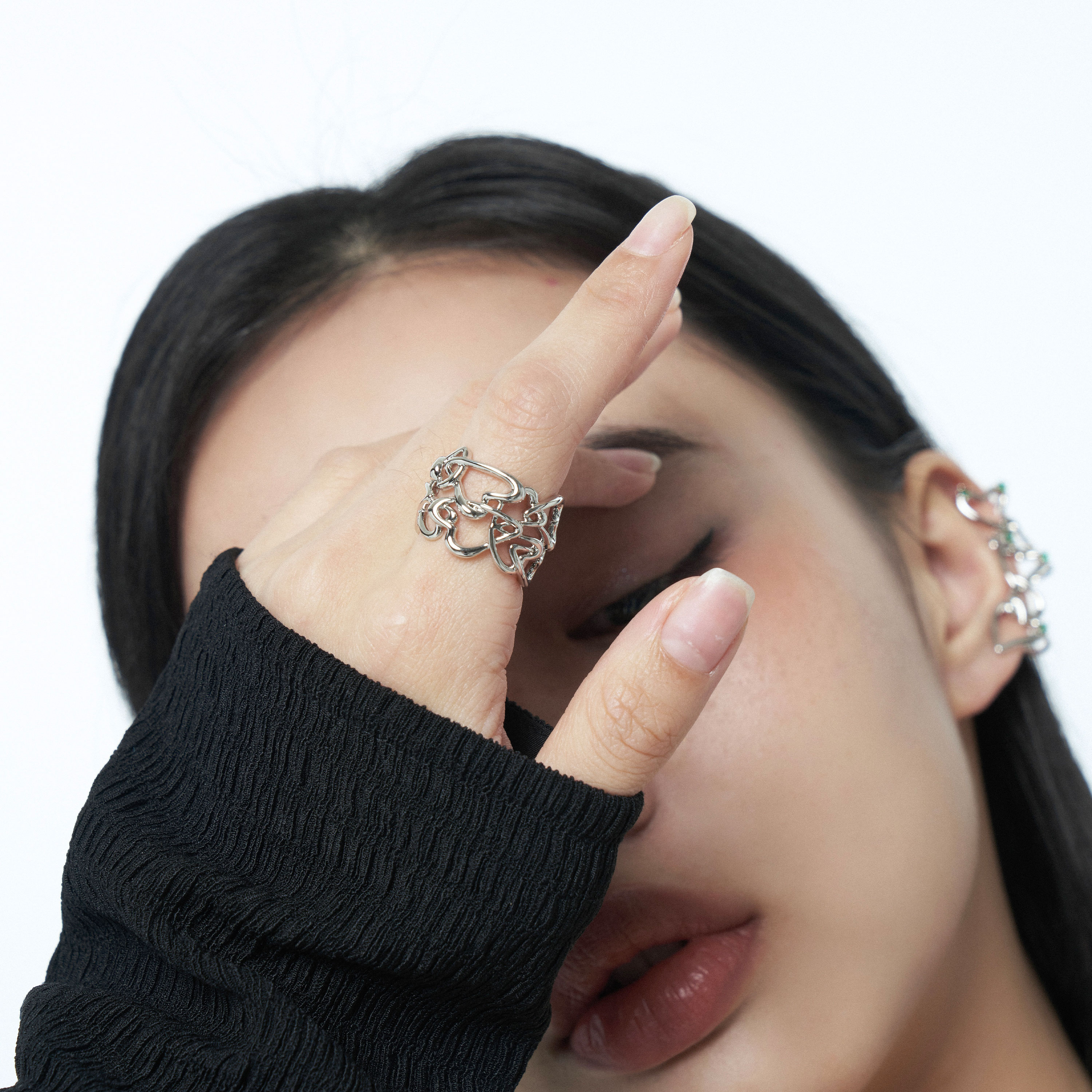 TowerOneSelect官方店DINN DINN初爱爱心镂空拼接戒指层次开口戒