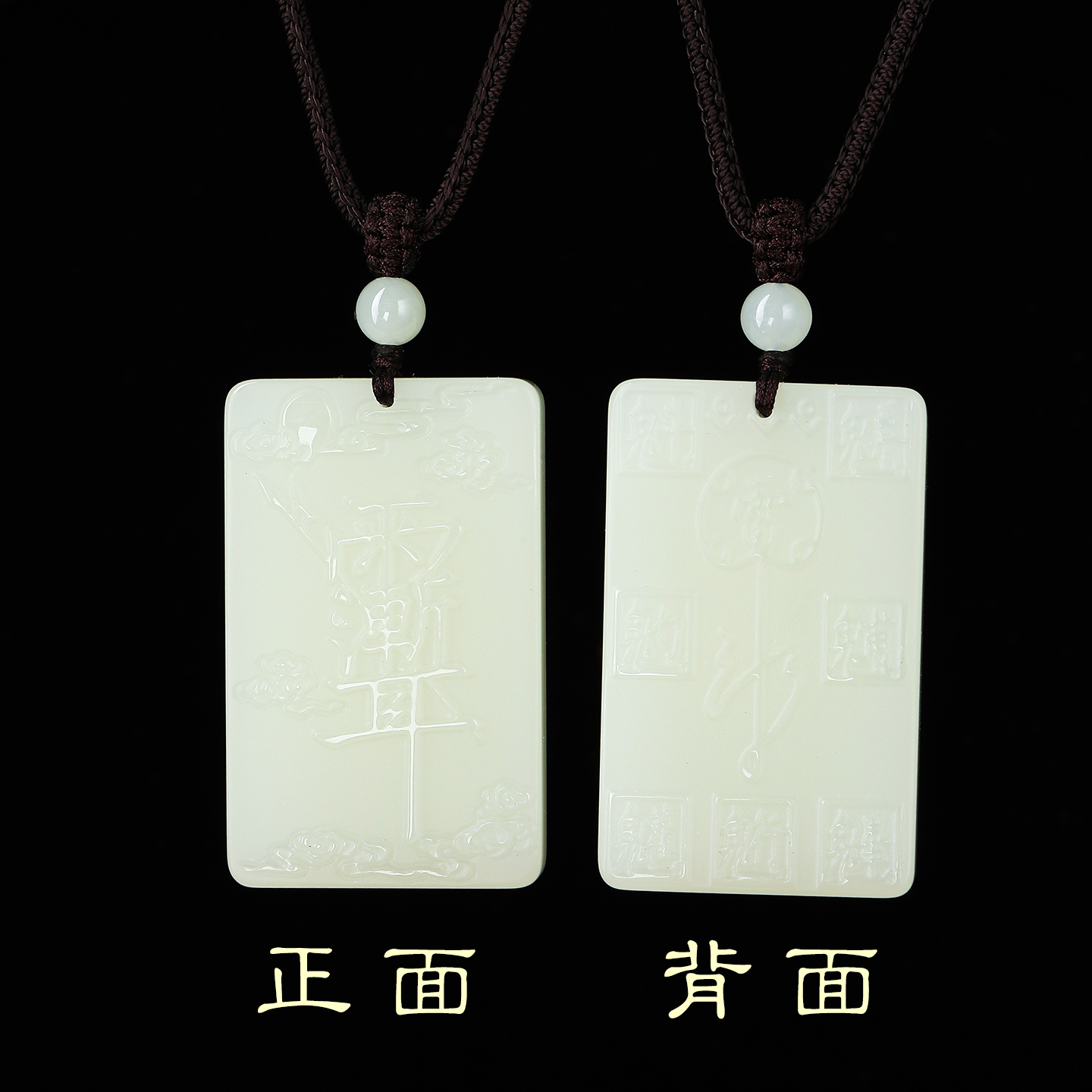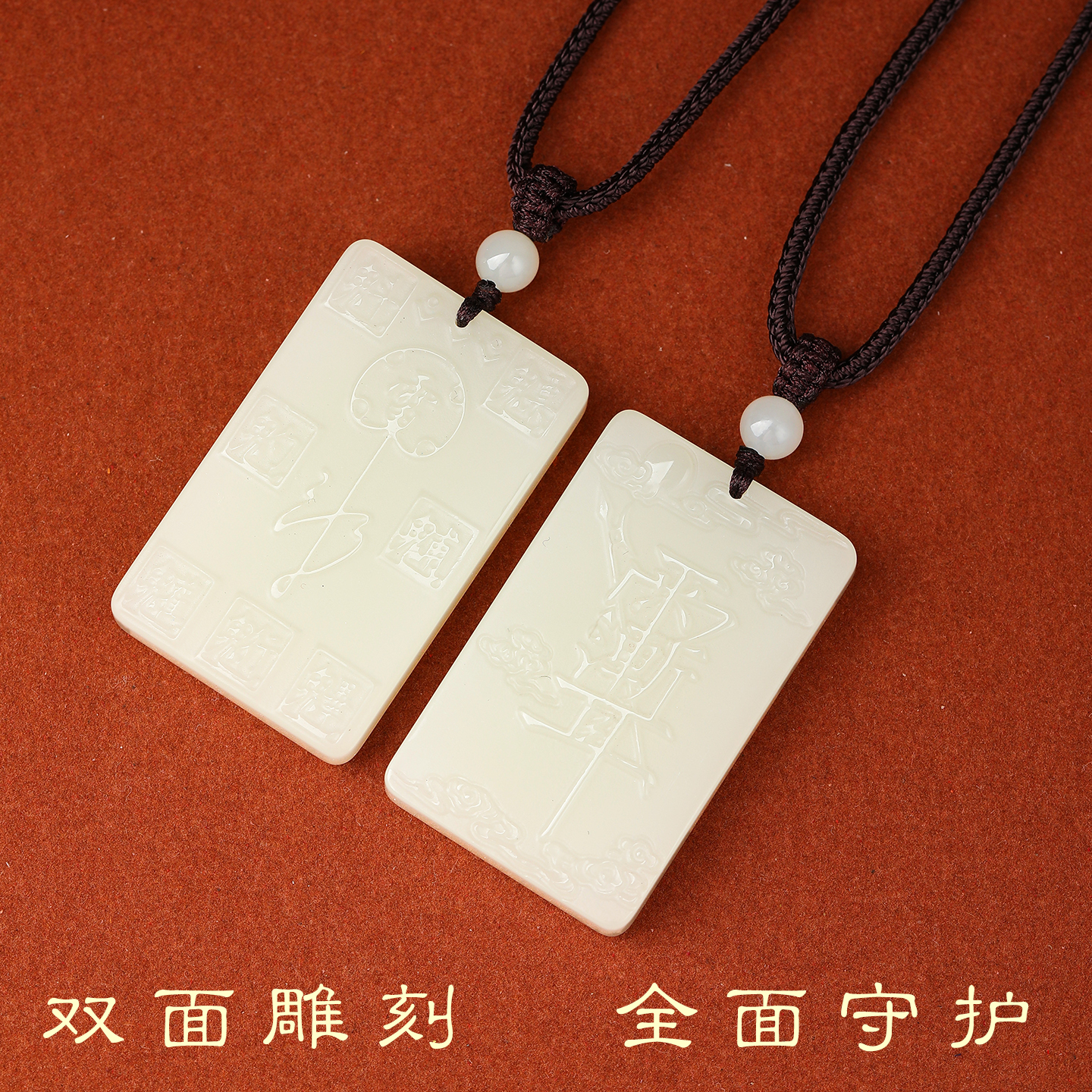 白玉紫薇讳吊坠双面雕刻道家雨渐耳平安无事牌挂件玉石护身符