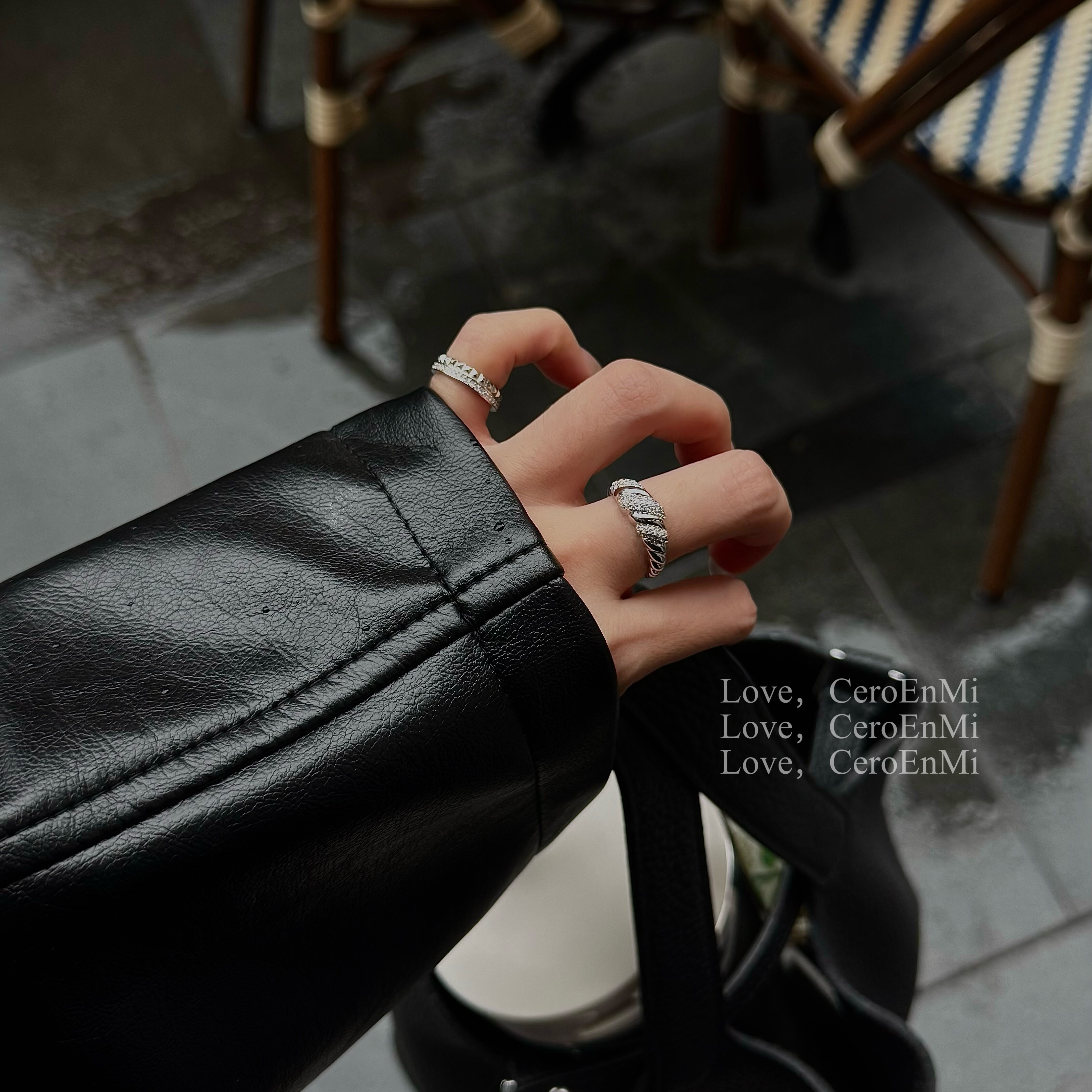 CeroEnMi 美式复古麻花绳结镶钻锆石戒指女高级轻奢精致感食指戒