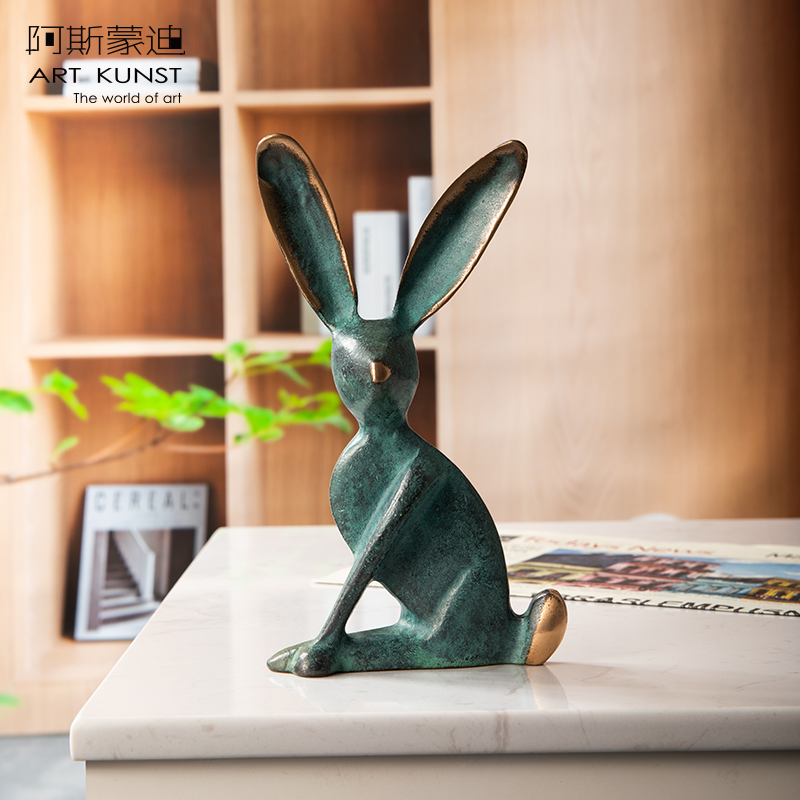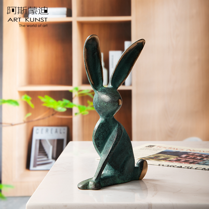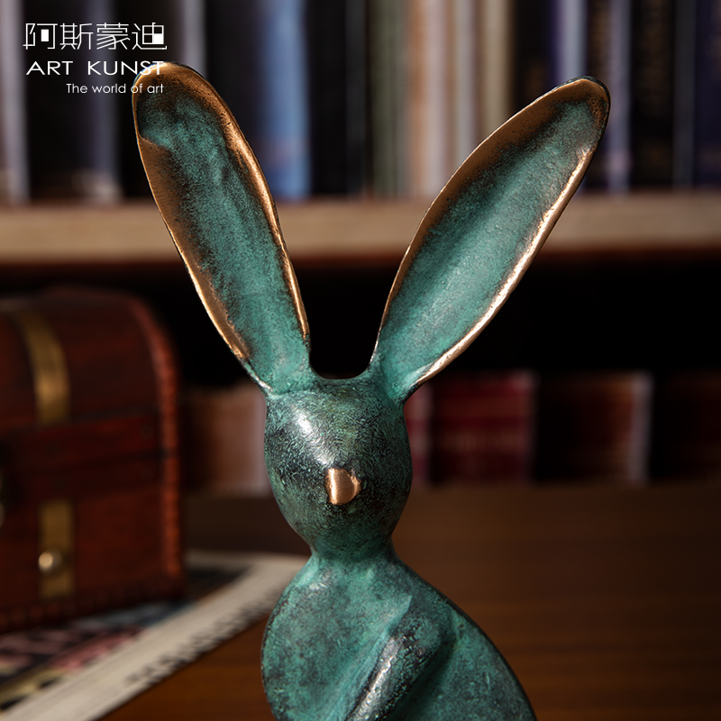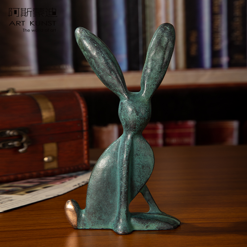 阿斯蒙迪进口青铜兔子摆件雷蒙原创生肖兔生日礼品艺术品欧式摆件