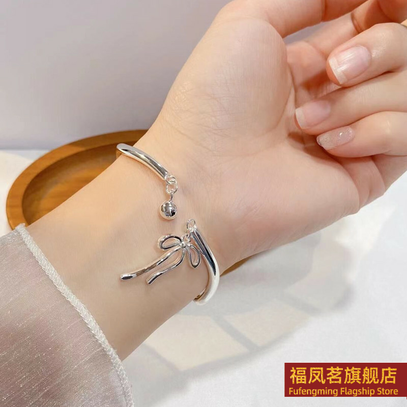 正生莫比乌斯环在逃公主蝴蝶结铃铛纯银手镯足银999女小众刻字