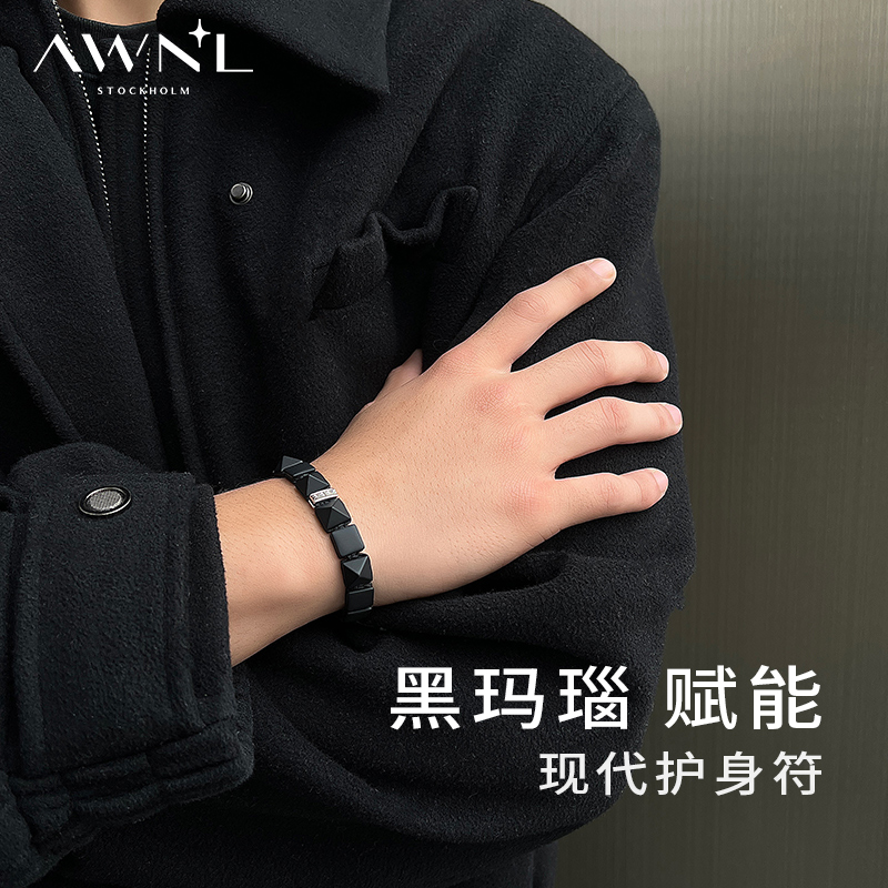 AWNL大威金刚黑玛瑙编织绳手链男小众设计感手串礼物送礼送男友