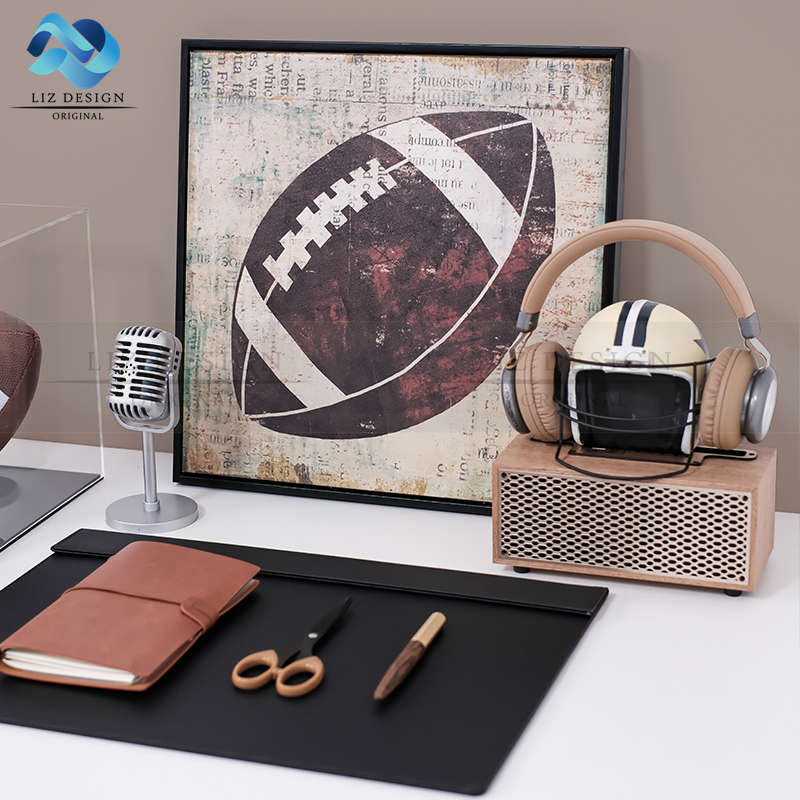 轻奢样板间儿童房摆件书桌软装美式橄榄球主题桌面耳机音箱装饰品