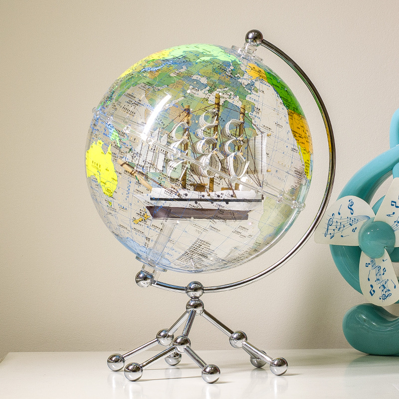 创意透明地球仪摆件轻奢客厅酒柜桌面儿童房女男孩恐龙帆船装饰品