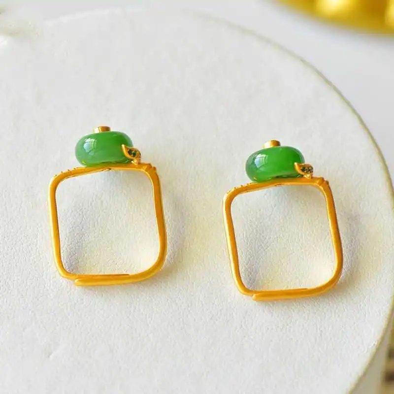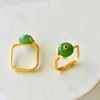 方圆戒镀S925银仿和田碧玉平安扣精致时尚宫廷风小方戒指开口指环
