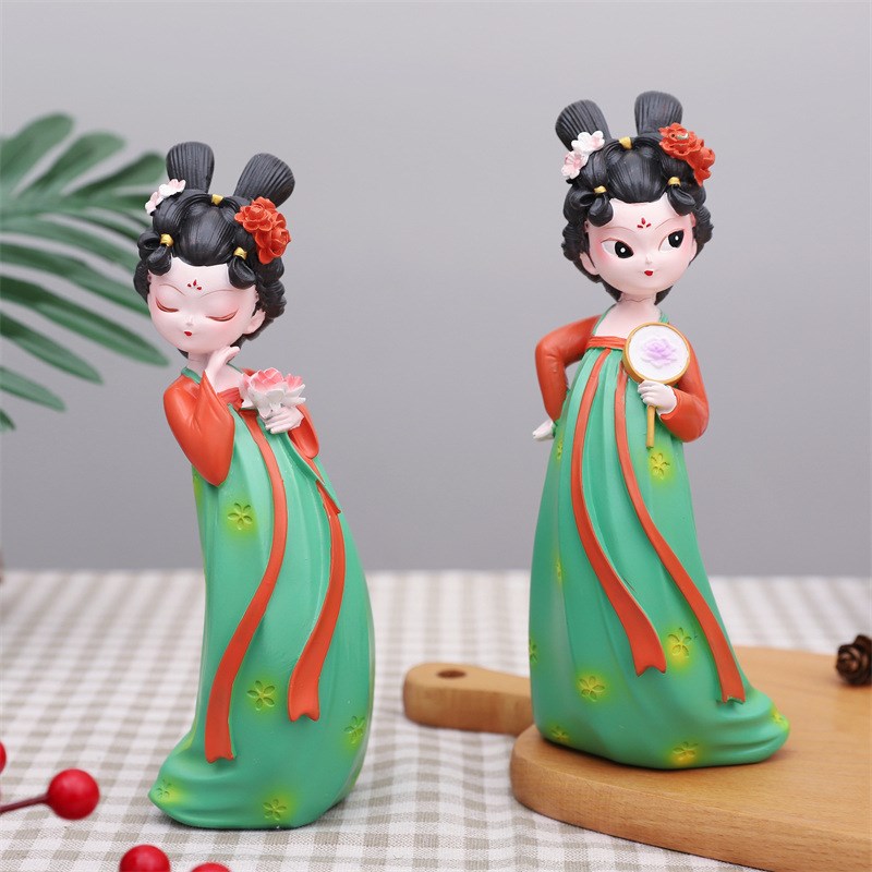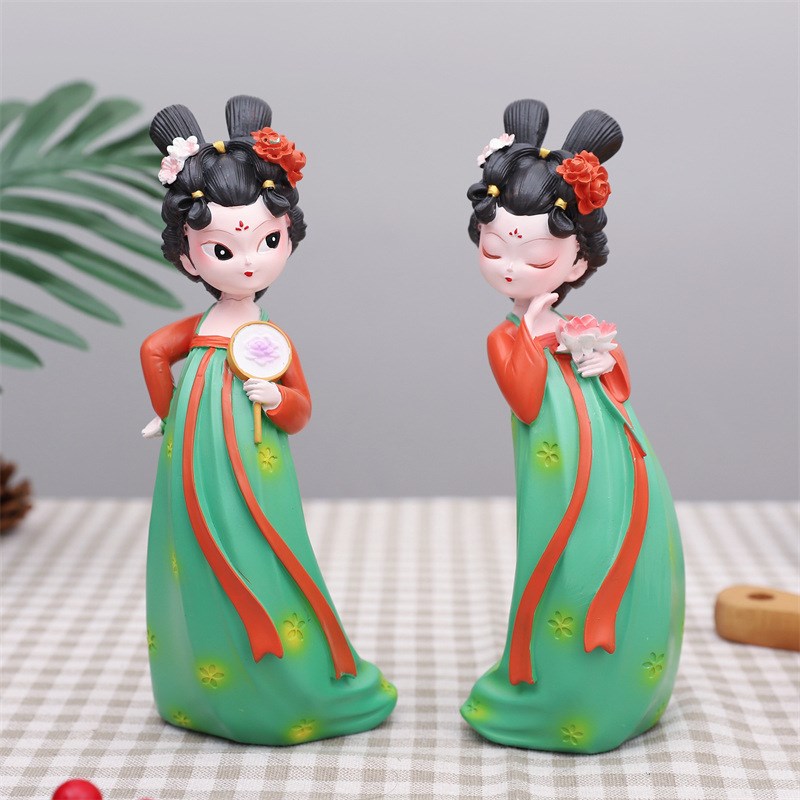 国风创意古风唐仕女汉服少女摆件玄关家居装饰客厅唐宫夜宴侍女摆