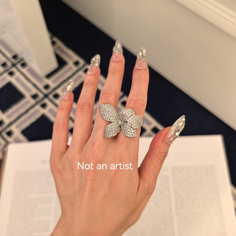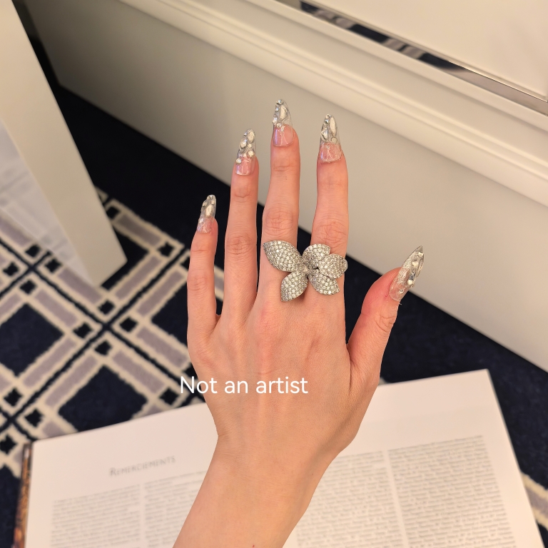 欧美新款花朵戒指个性轻奢水钻戒指指环花卉开口戒指配饰女 小众