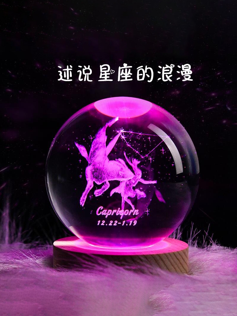 十二星座夜灯发光水晶球桌面摆件女生生日礼物送男女朋友定制刻字