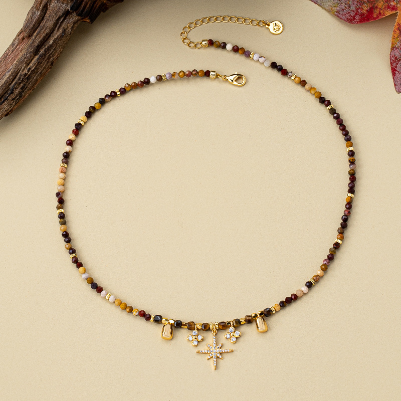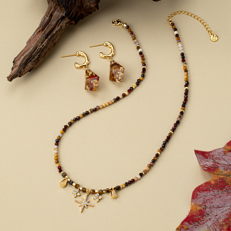日本品质气质天然石串珠太阳神芒星吊坠项链几何耳钉女轻奢小众设