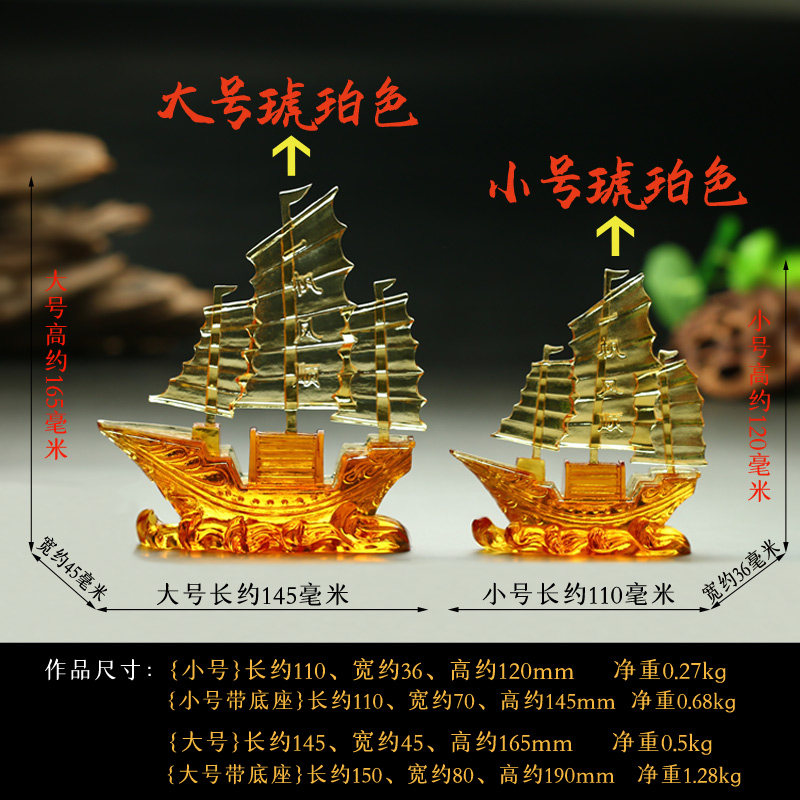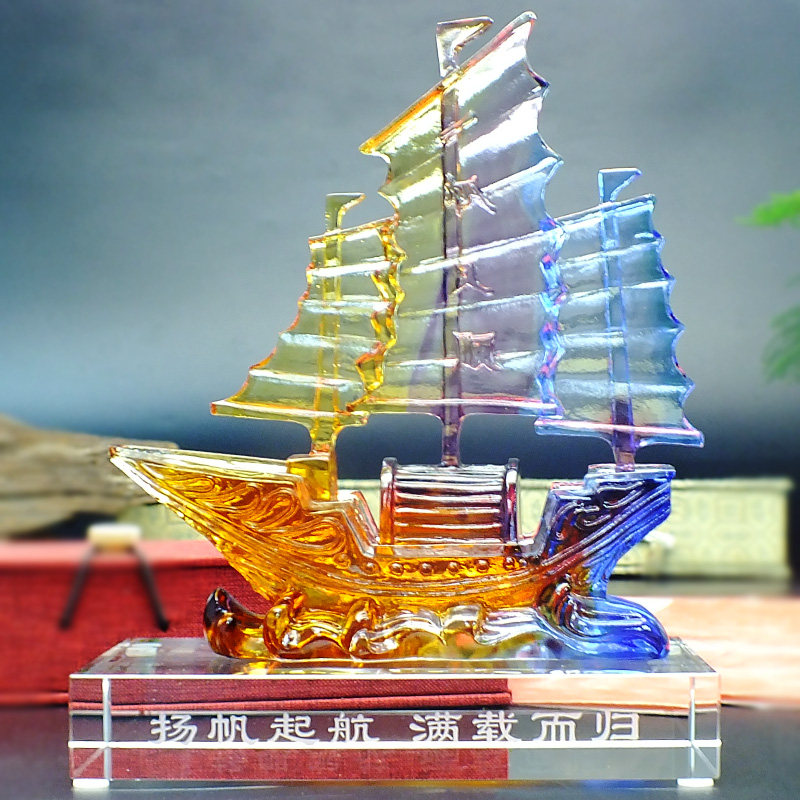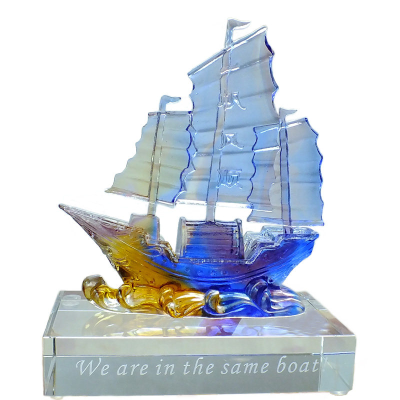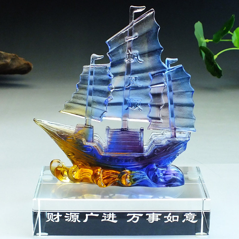 一帆风顺帆船摆件轻奢高档工艺品琉璃水晶船办公室家居客厅装饰品