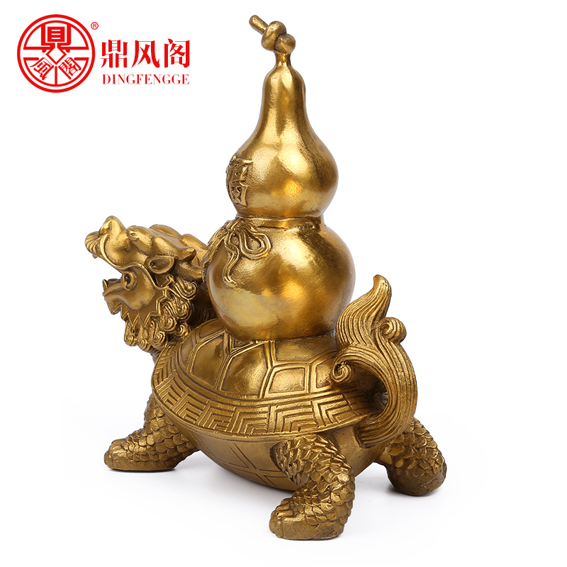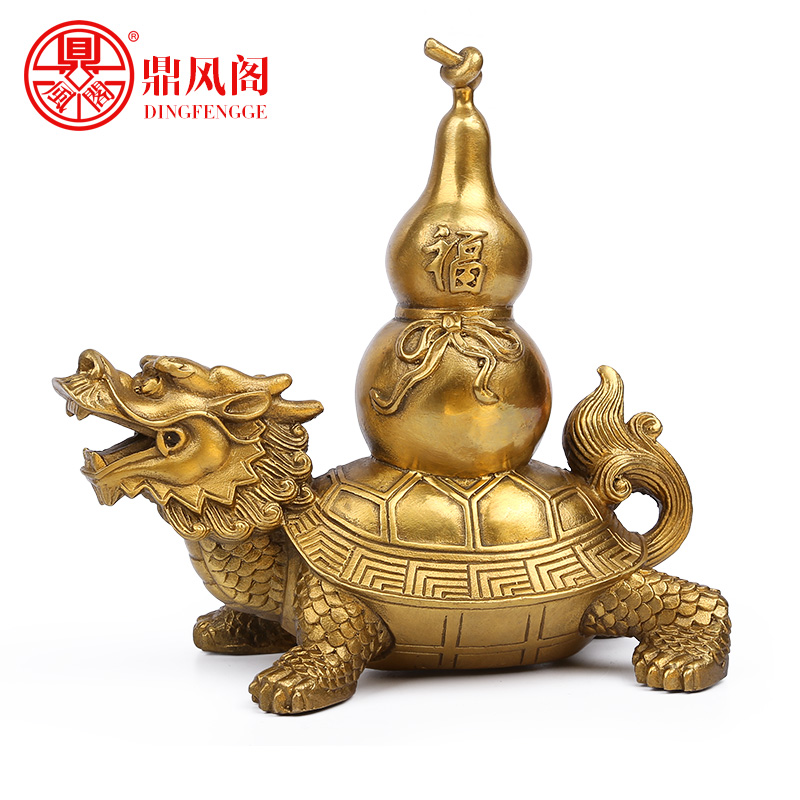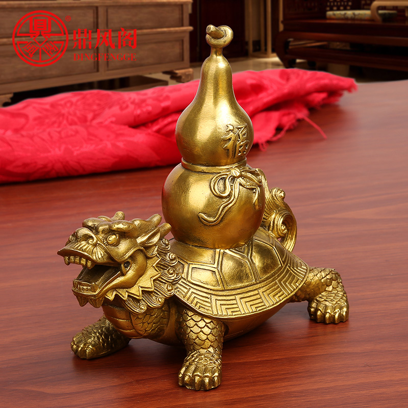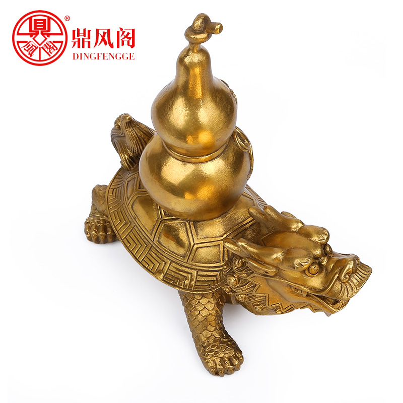 鼎风阁 纯铜葫芦龙龟摆件u玄灵护岁龙龟客厅办公桌福禄龙龟工艺品