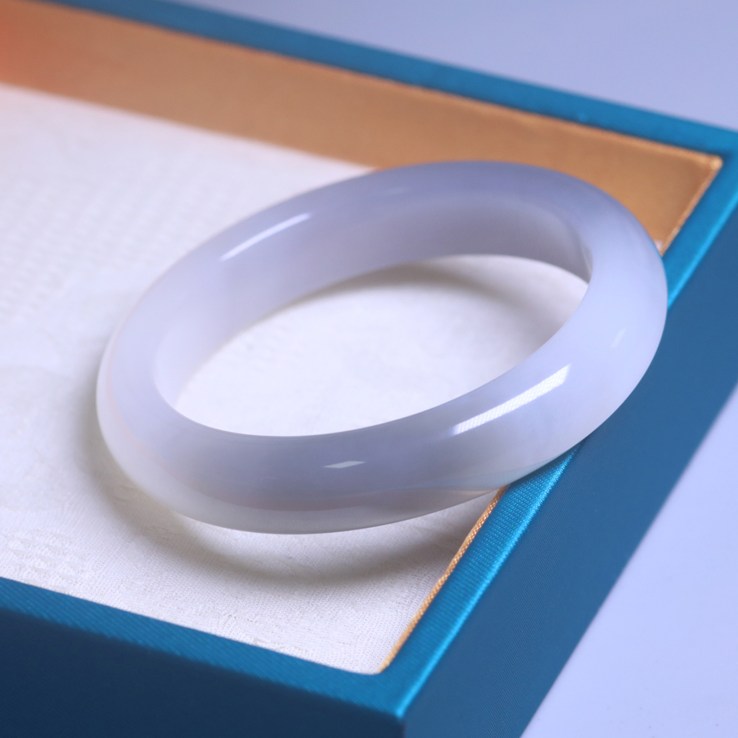 珪宝56.2mm和田玉白冰烟紫宽条手镯女款玉镯子天然玉石带证书2580