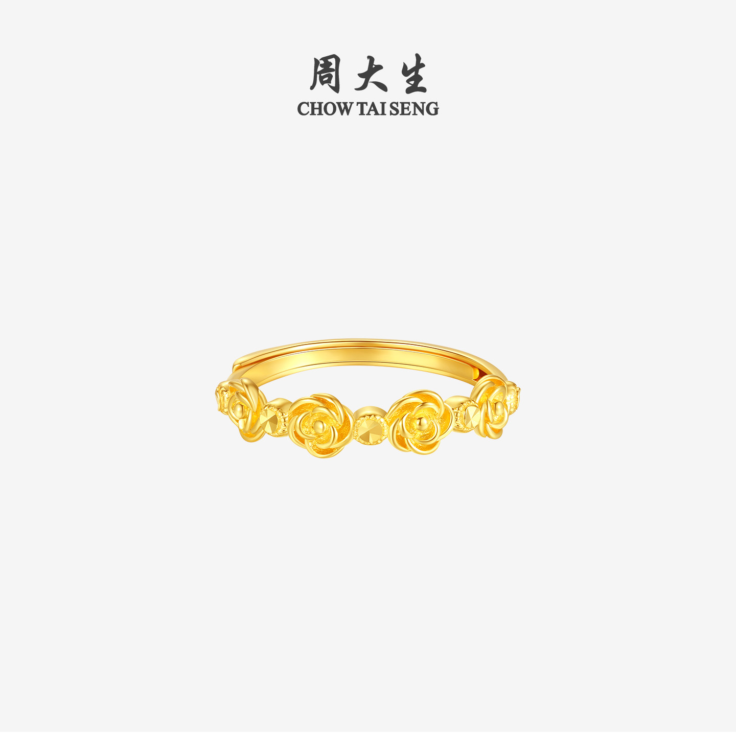 圣诞礼物周大生黄金戒指女足金5G玫瑰花手饰小花朵叠戴指环送女生