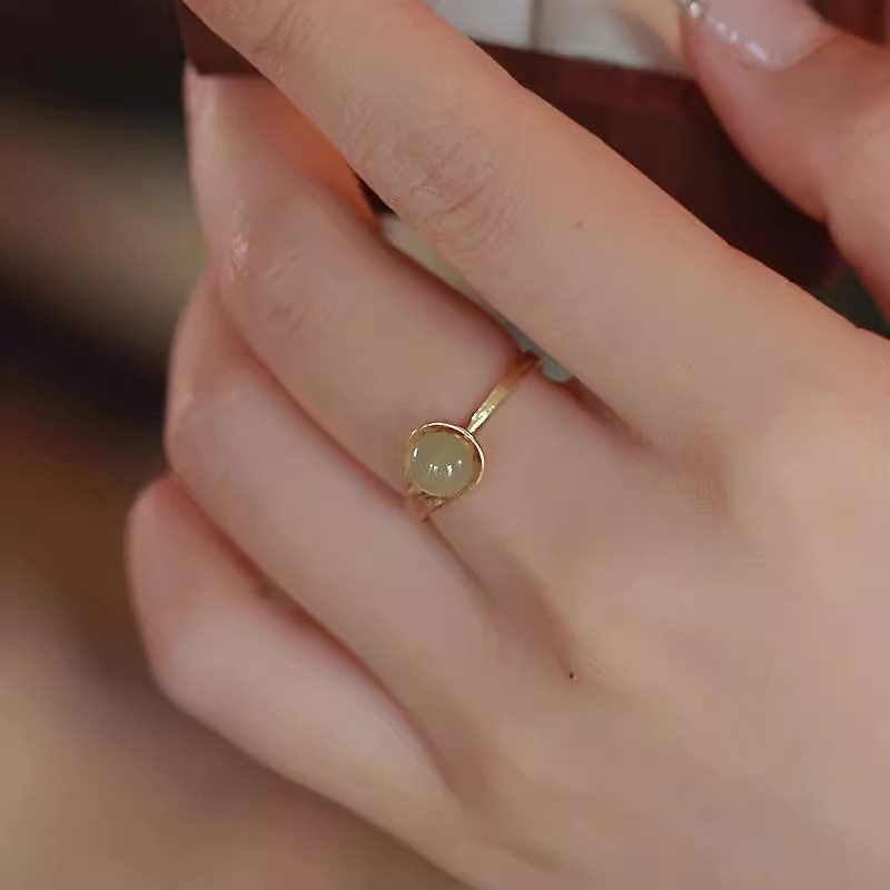 新款和田玉郁金香戒指女可调节玉石指环女可调节礼物
