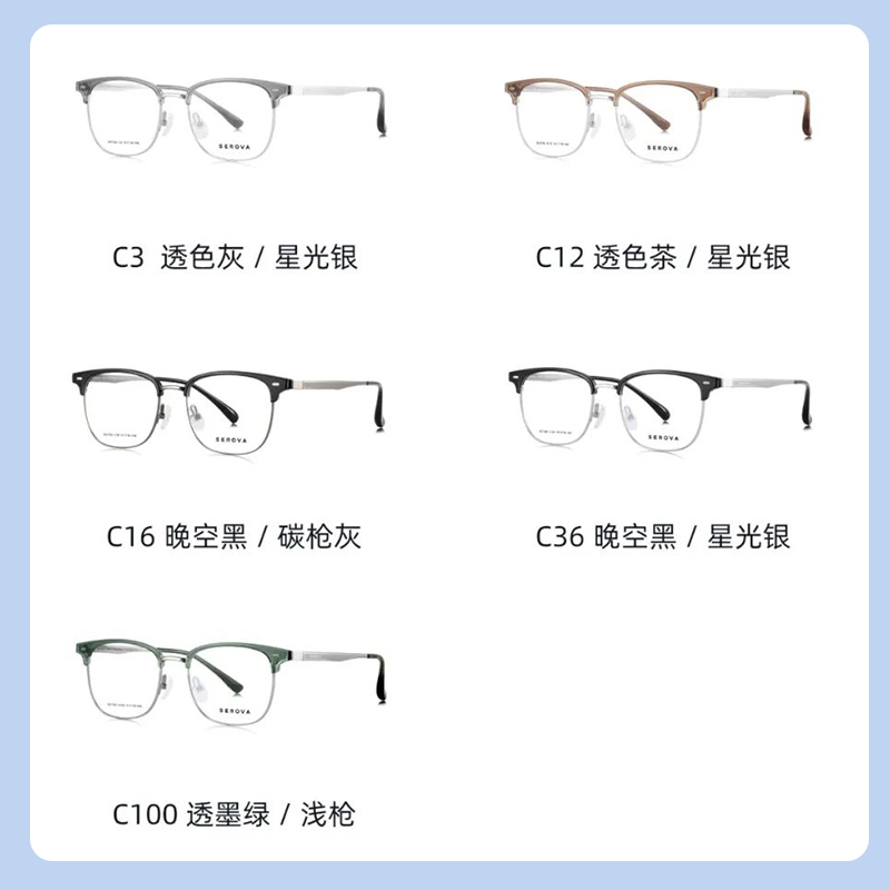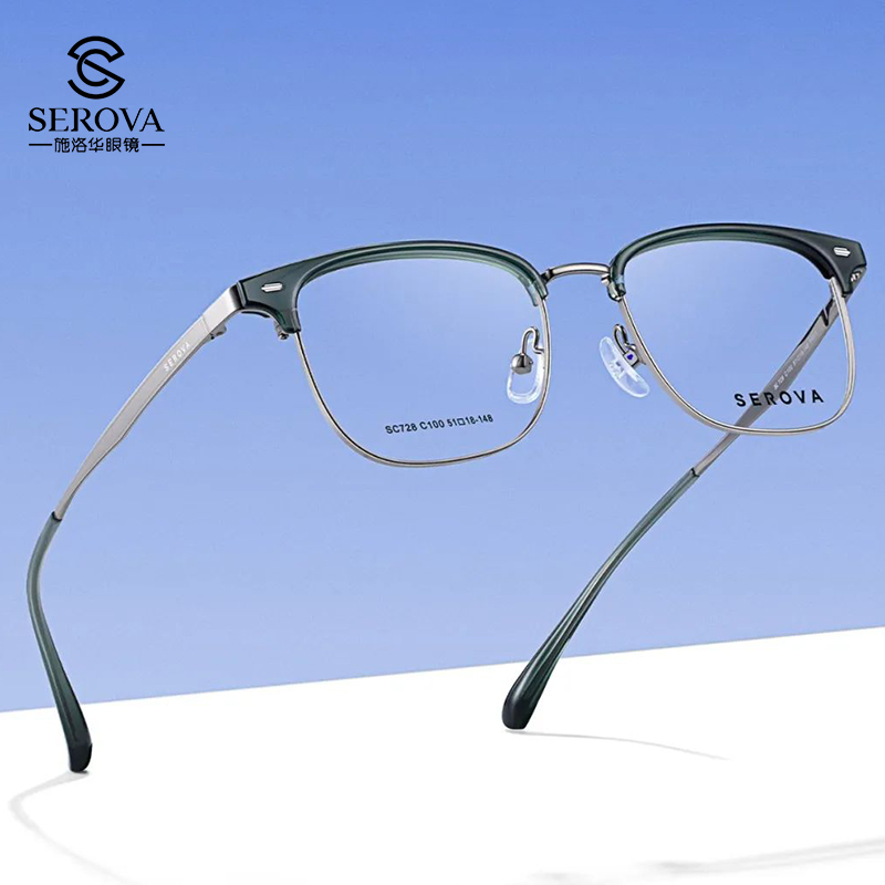 施洛华复古眉线半框斯文男超轻钛材眼镜女眼镜配近视防蓝光SC728