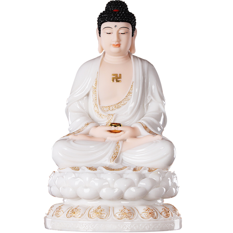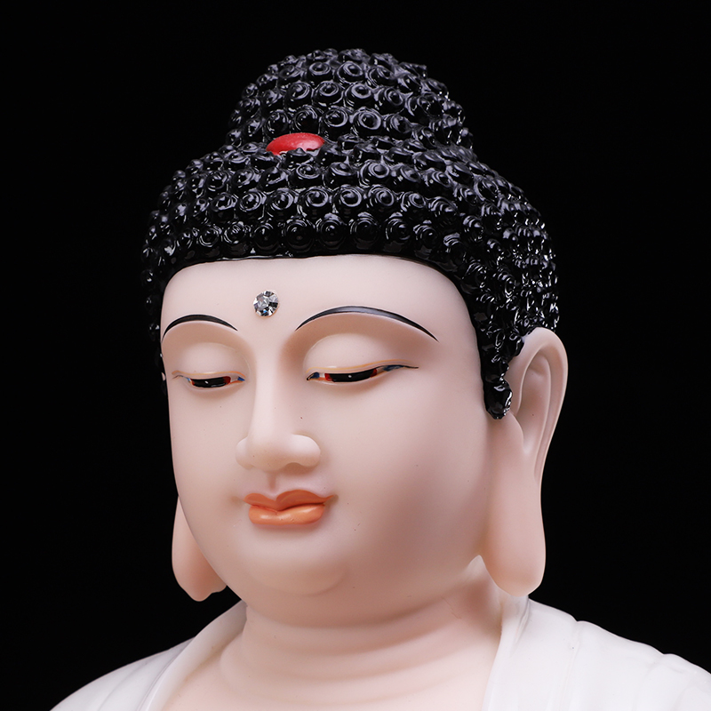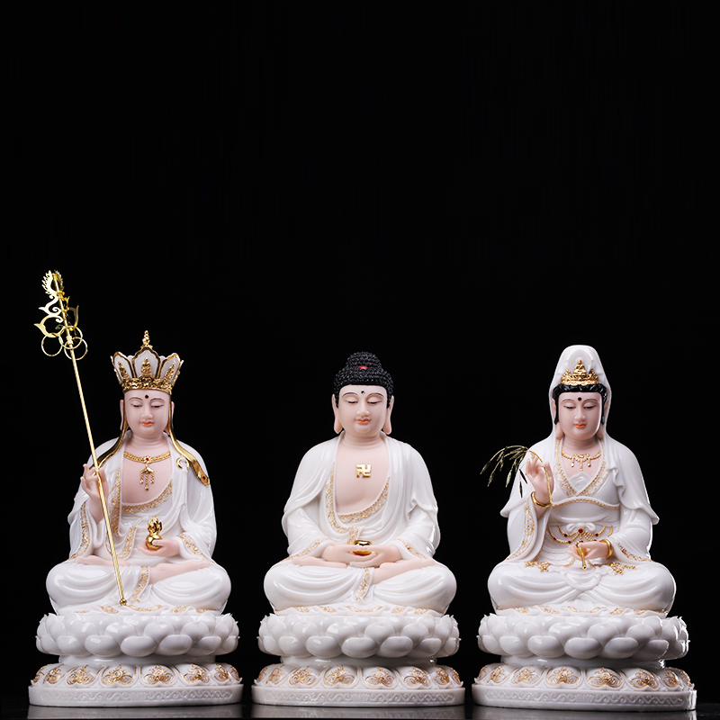 汉白玉释迦摩尼佛像释迦牟尼佛如来家用供佛三宝佛佛像一套摆件