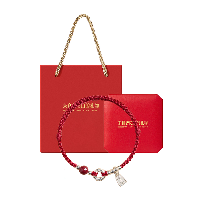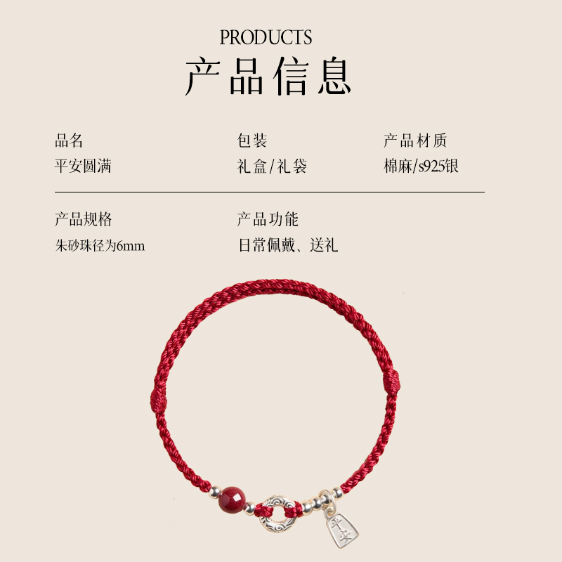 遇见普陀山平安扣手链女本命年红手绳纯银朱砂和田玉转运珠礼物男
