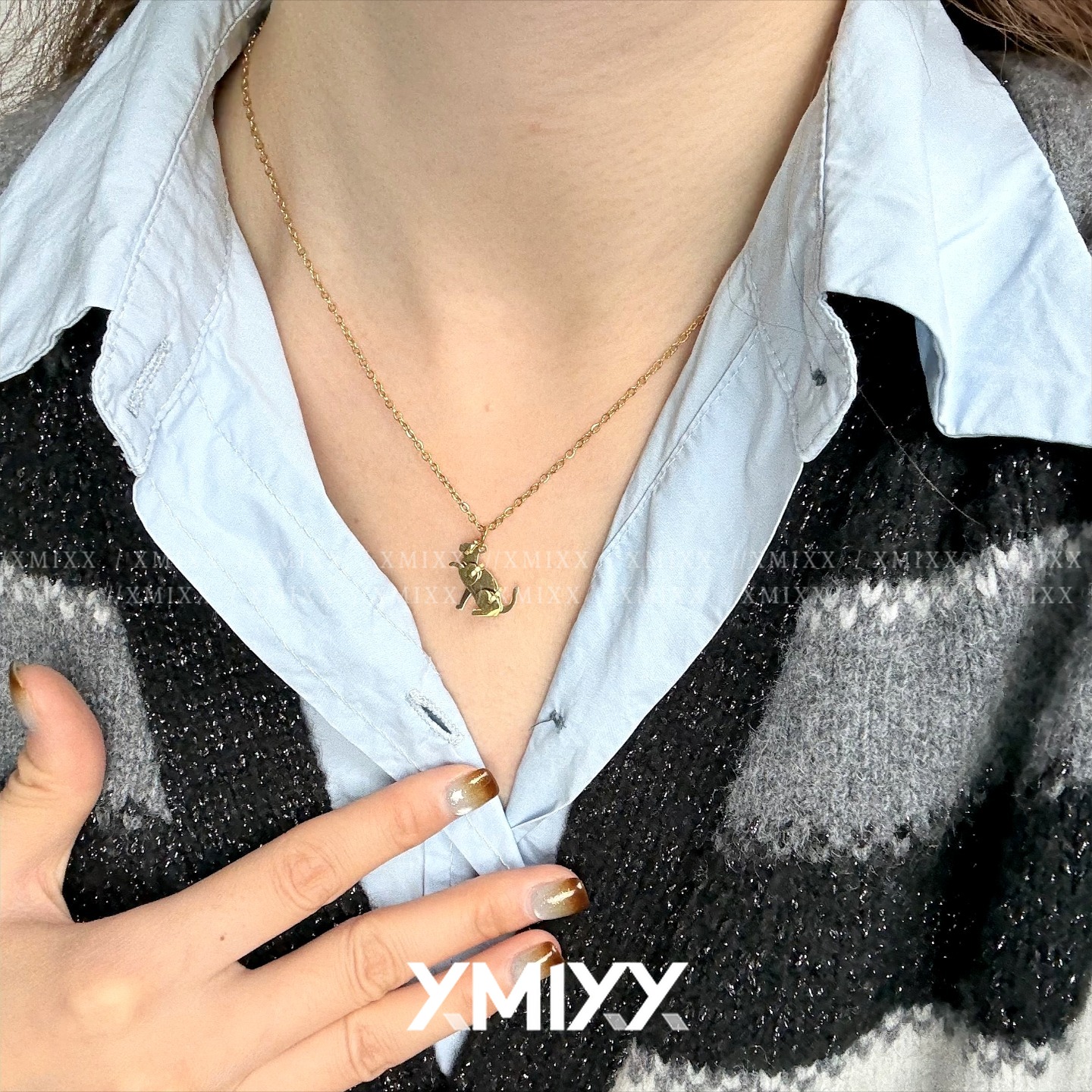 欧美立体积木猫咪钛钢项链女情侣不掉色小众设计高级简约通勤纪念