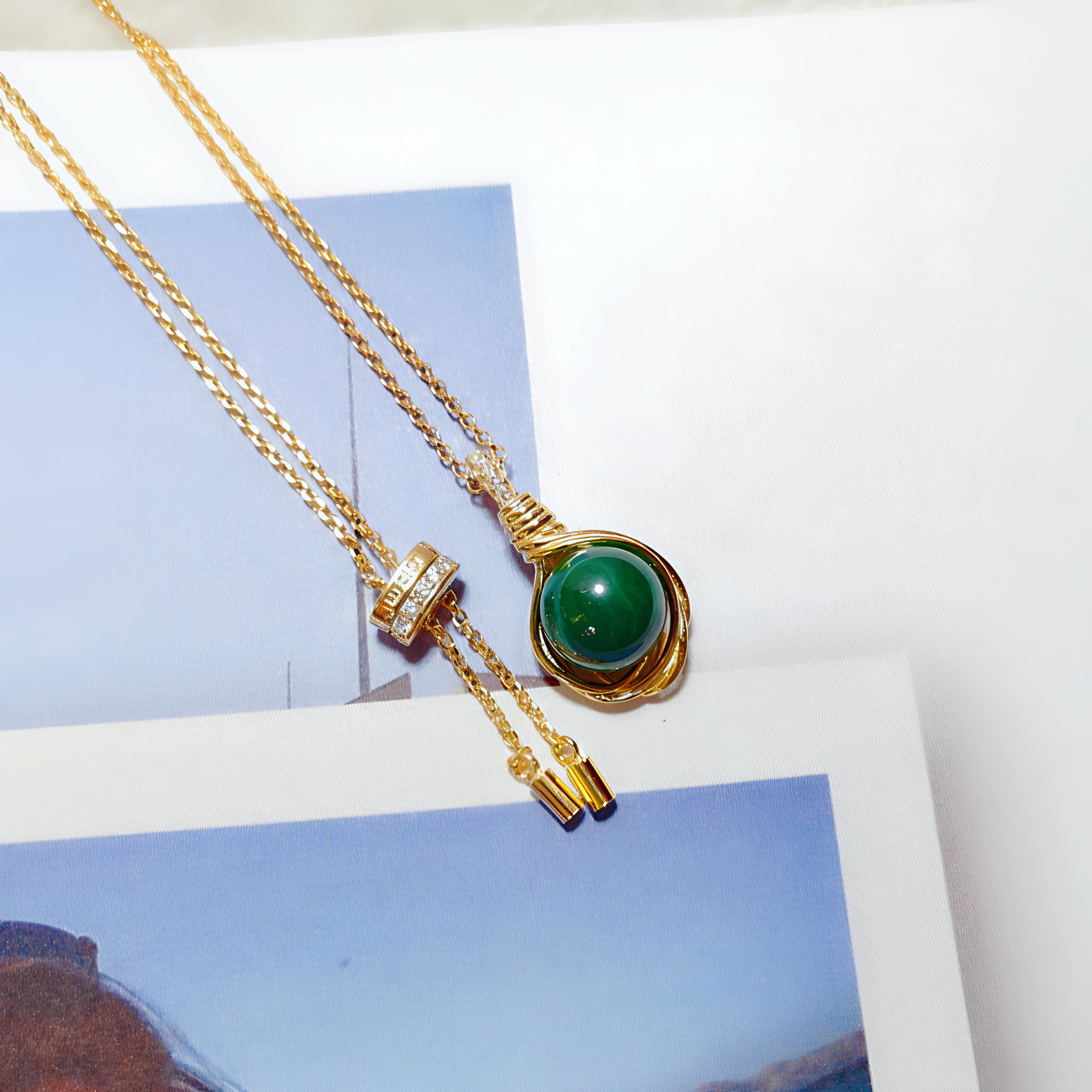 纯银S925设计师款绿色松石中古衣服配转运珠项链新中式复古女送礼