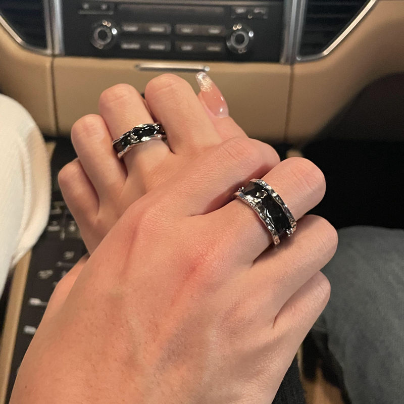 戒指男生王鹤棣同款S925纯银黑色水钻潮流开口可调节高级感食指