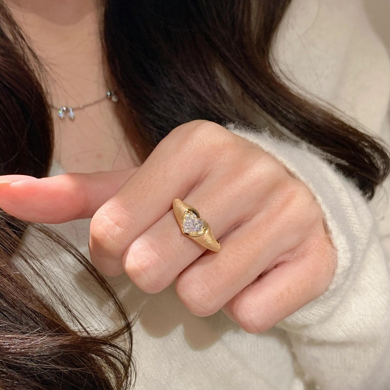 925纯银复古拉丝爱心钻戒指时尚气质日常百搭简约高级独特食指戒