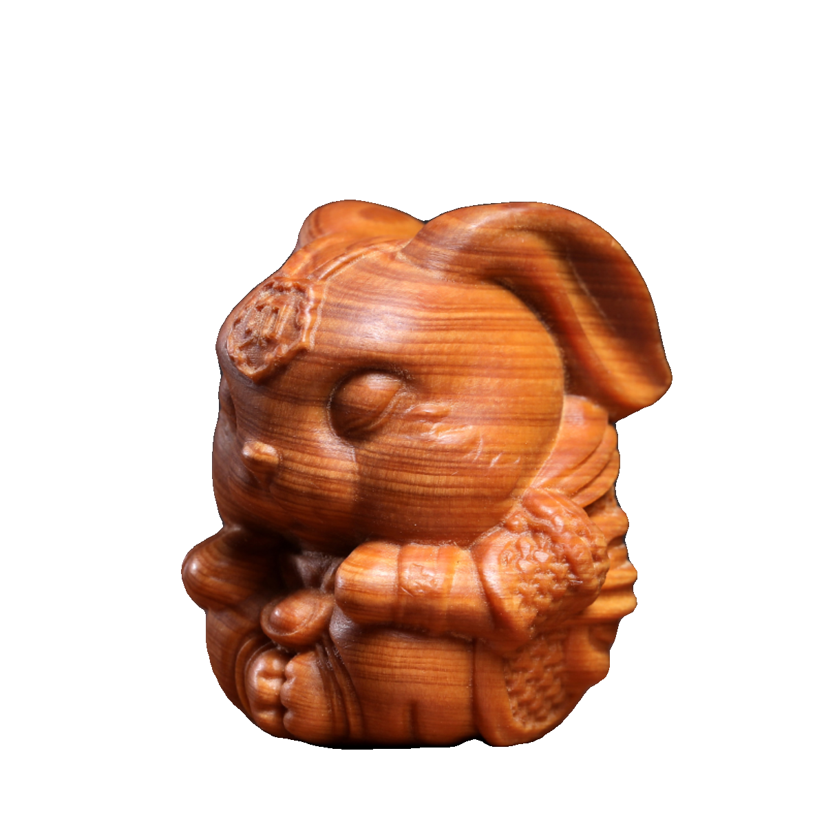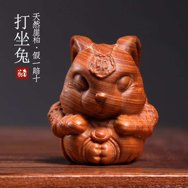 天然崖柏木打坐兔可爱摆件生肖兔创意文玩手把件兔子车载桌面摆件