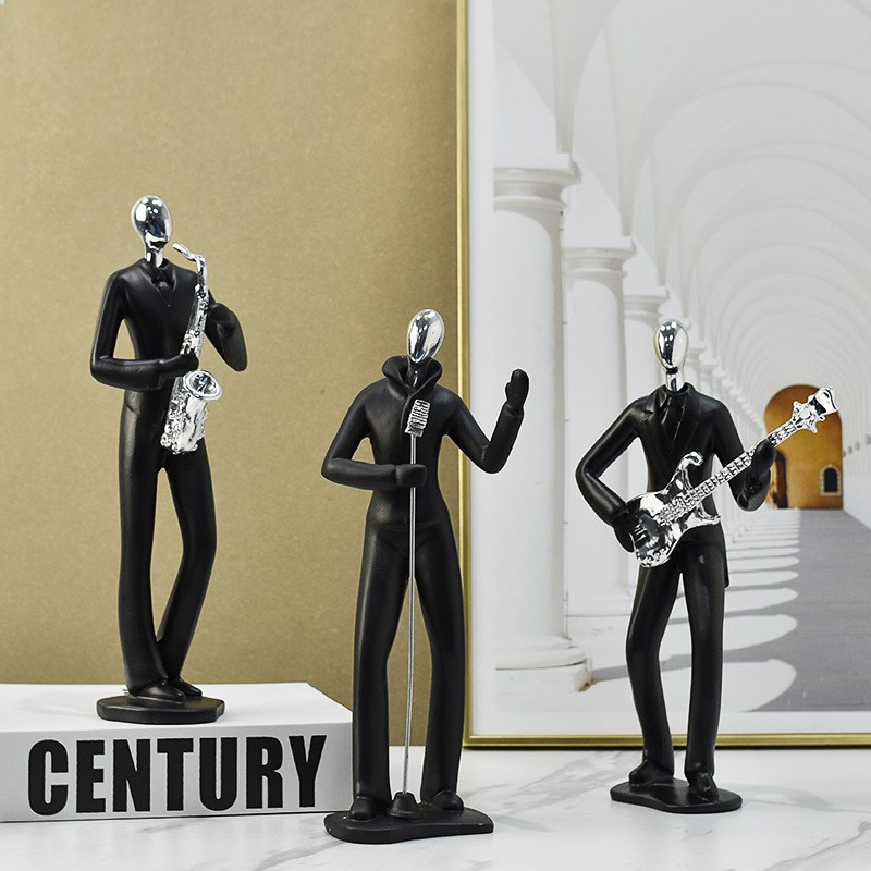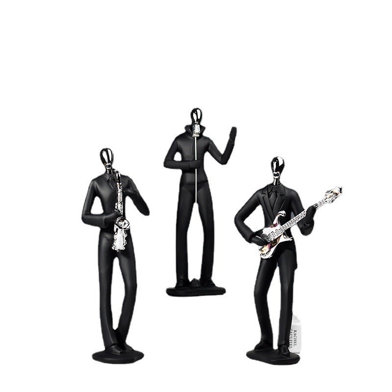 北欧简约歌手黑色人物套装家居客厅玄关电视柜酒柜装饰品摆件组合