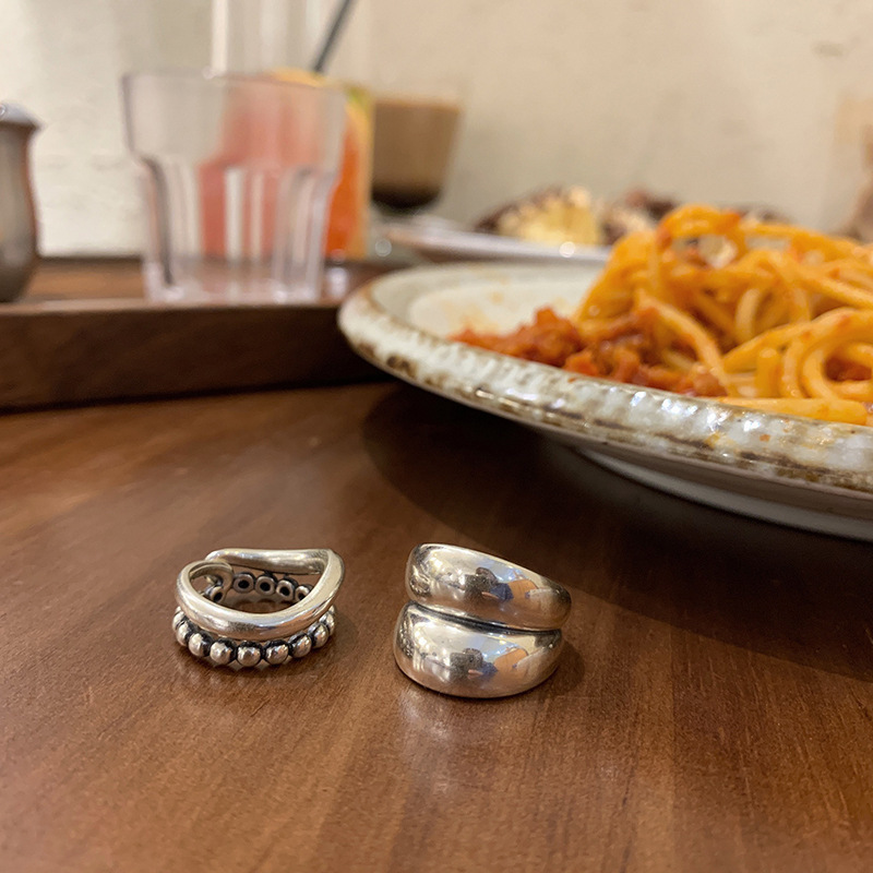韩国圆珠复古重工戒指女925银欧美个性做旧几何简约开口食指环