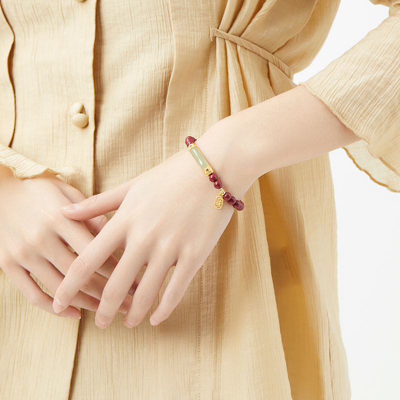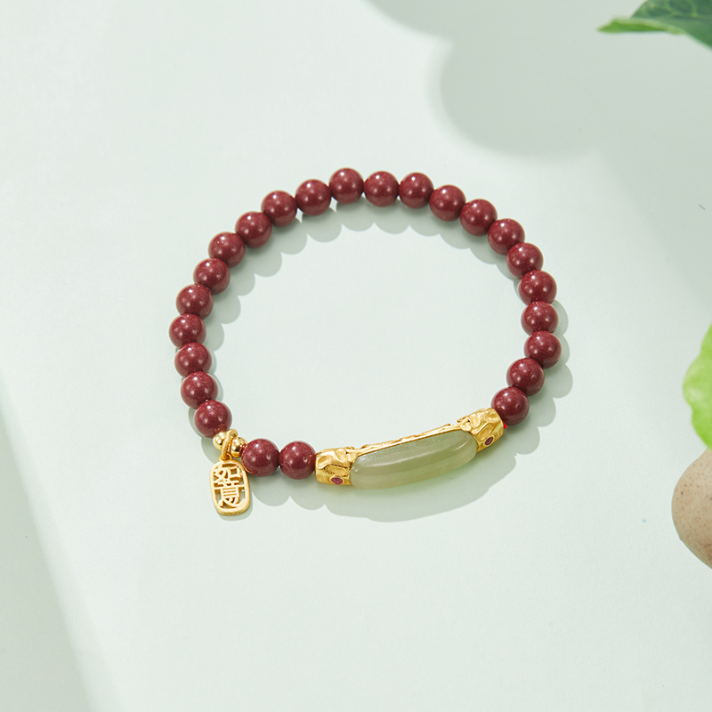 【自营】daisy beauty如意朱砂和田玉手串女国潮手链礼物银手链
