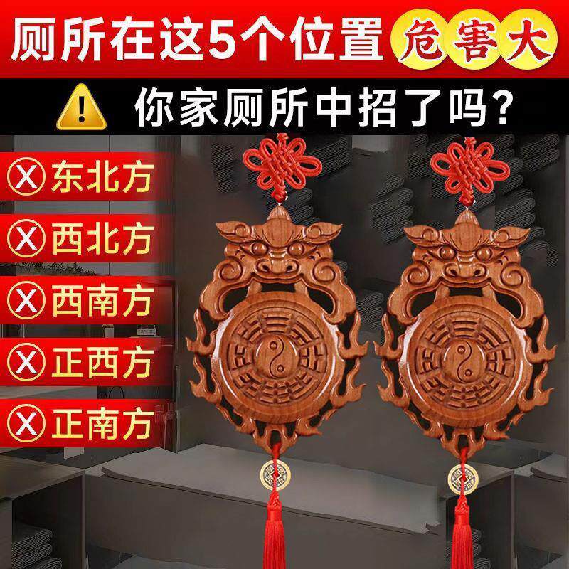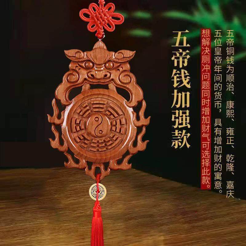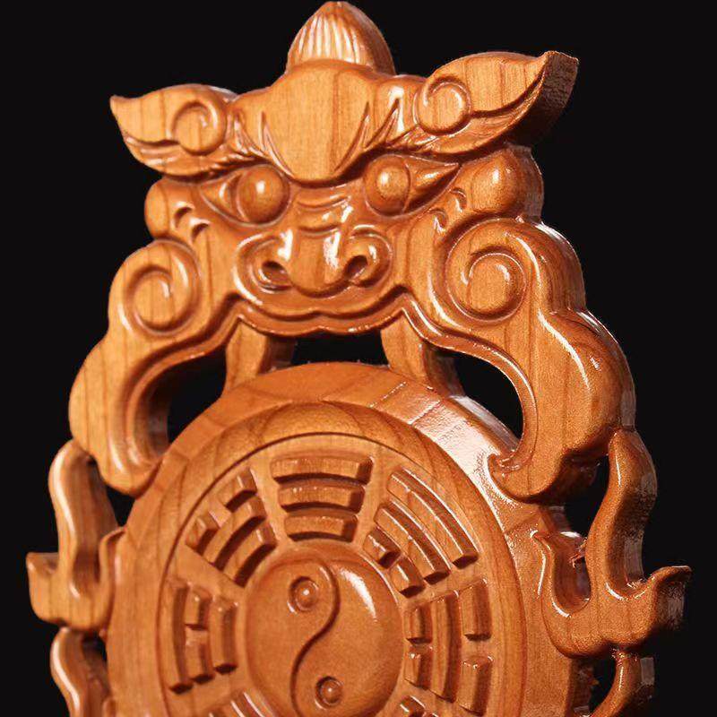 德国进口13-15厘米老桃木虎头兽首八卦镜挂件家庭和睦厕所厨房卫