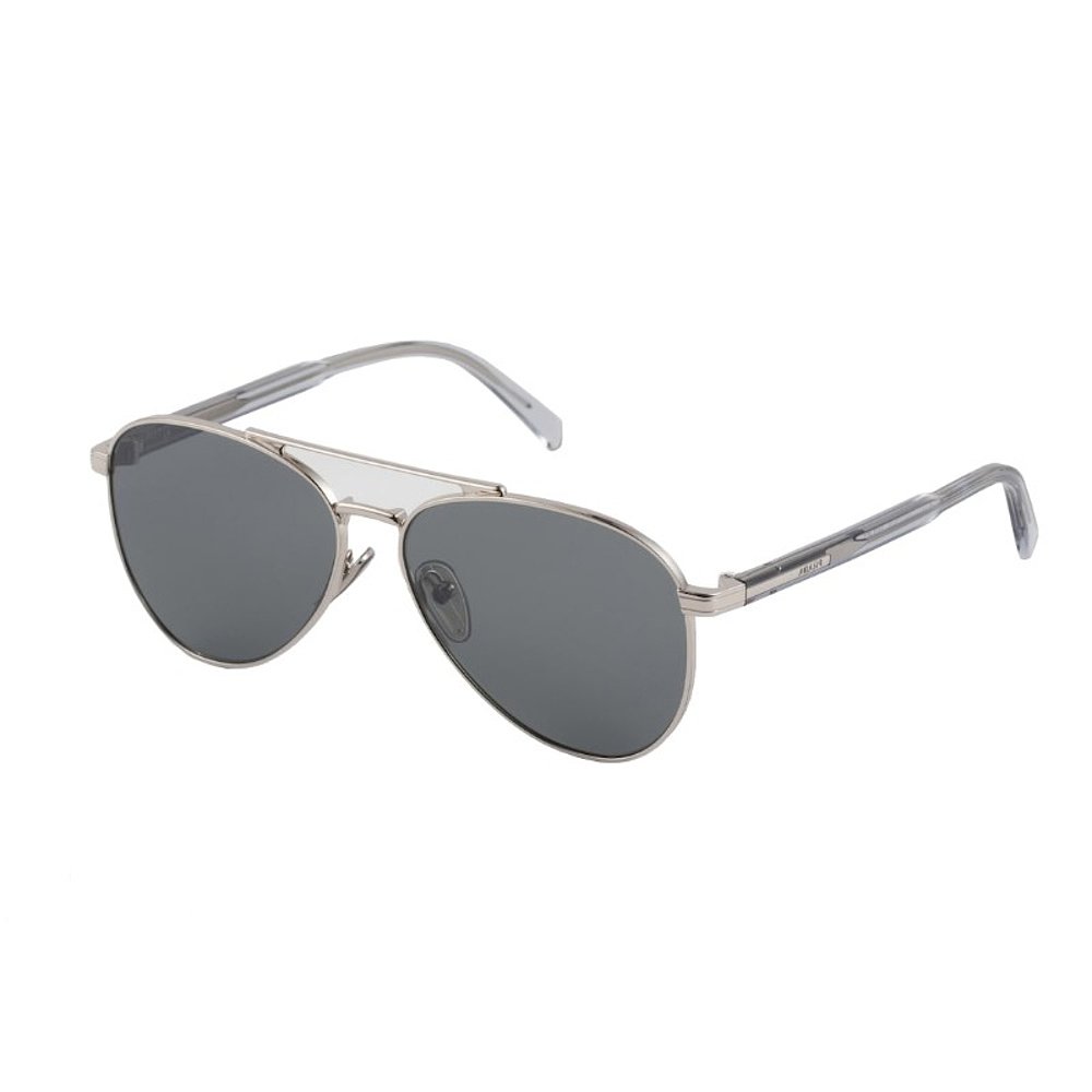 自营欧洲直邮PRADA/普拉达24新款 男女通用银色金属框灰色镜片墨