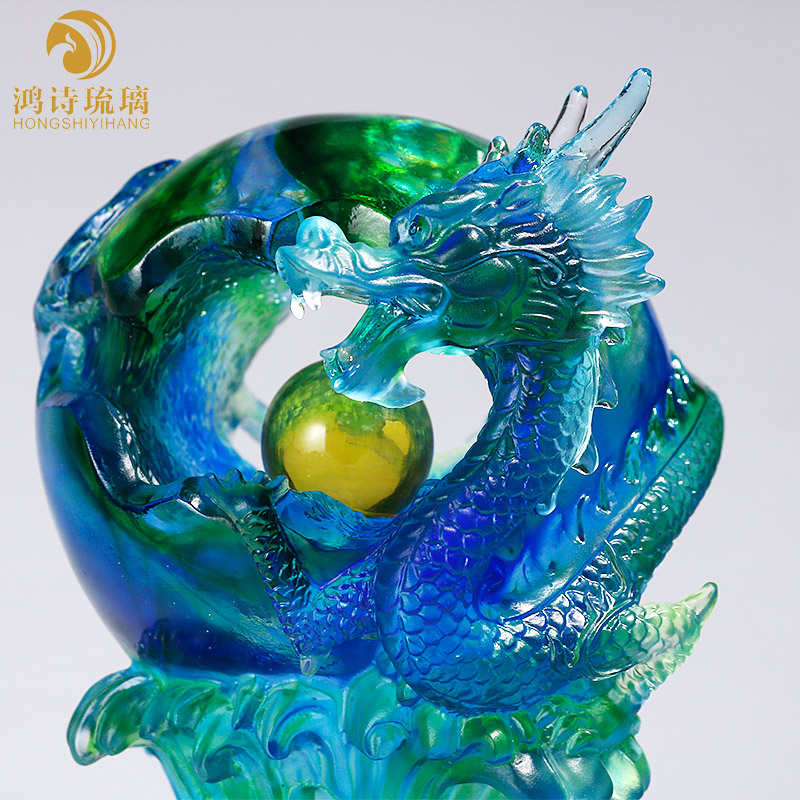 琉璃龙摆件水晶工艺品办公室客厅桌面创意装饰品公司创意开业礼品