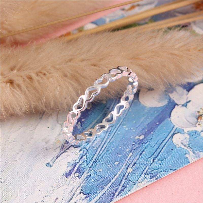 简约设计足银990纯银满爱心戒指简约日韩版百搭食指尾戒银饰品