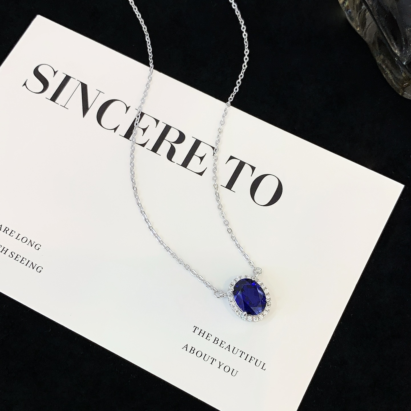 实验室培育蓝宝石项链925纯银镀白金合成宝石吊坠女锁骨链椭圆形