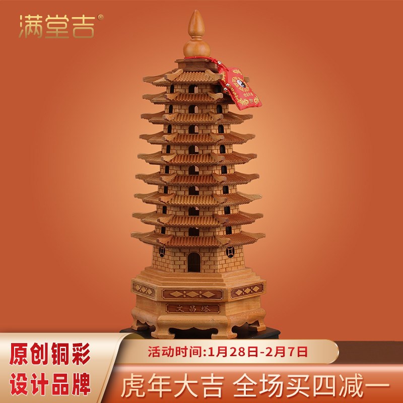 JZ48桃木文昌塔摆件木质九层十三层13层办公室书房书桌装饰摆设木