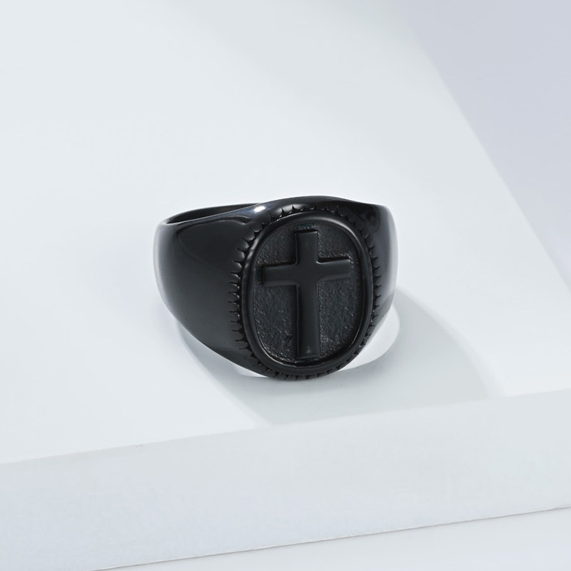 泰爱你泰爱你 简约金色十字架戒指男潮流个性小众设计感镀金指环