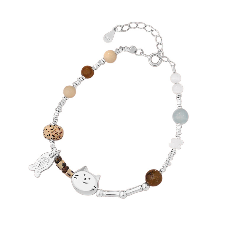 乾佳S925纯银小鱼碎银手链可爱童趣个性独特设计感小众手饰代发