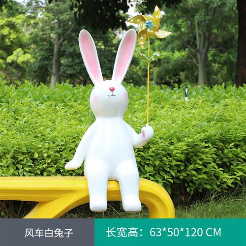 户外卡通抽象兔子雕塑商场幼儿园坐凳景观玻璃钢景区网红座椅摆件