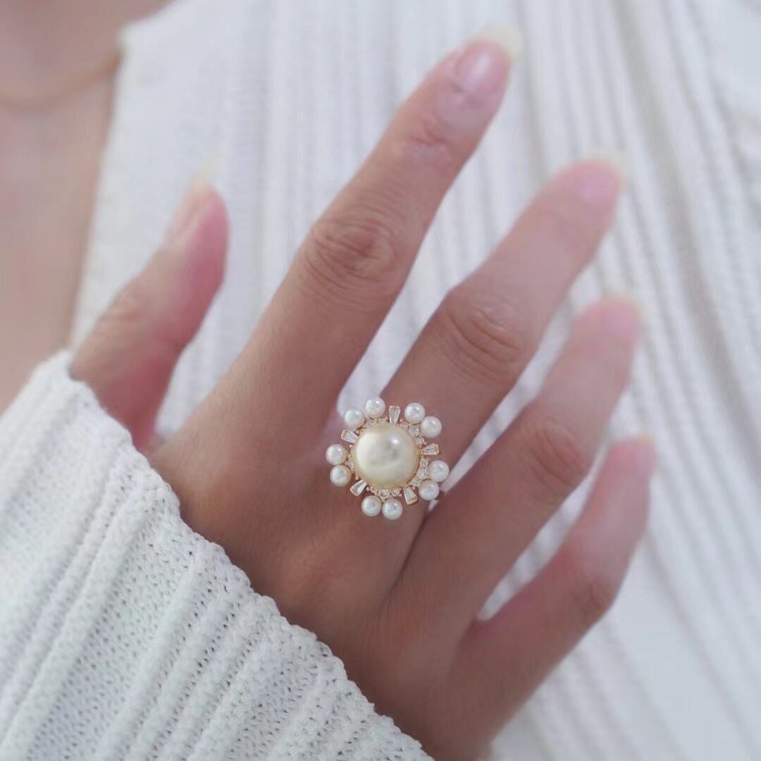 DIY珍珠配件S925纯银气质花朵戒指托指环戒托空托配3-4-10-11mm