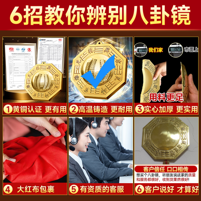 八卦镜凸镜铜凸面凹镜全黄铜九宫太极家用大宅门口阳台罗盘摆挂件