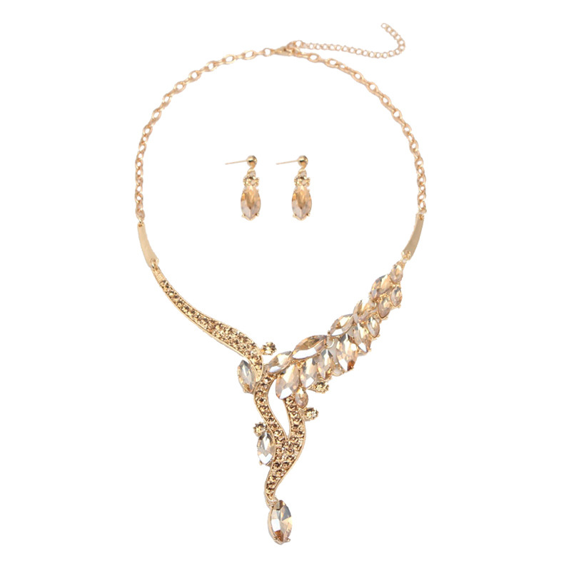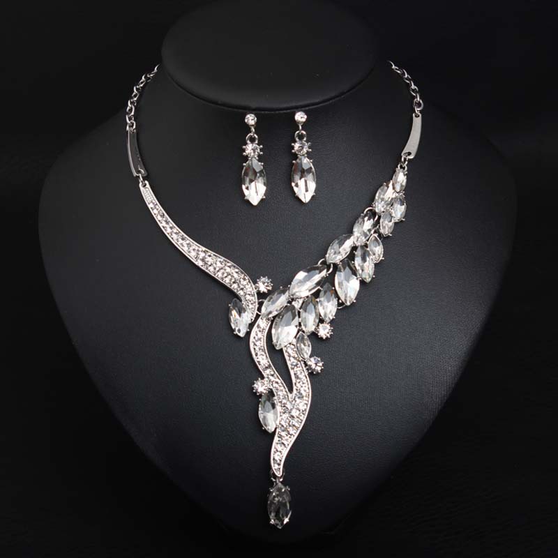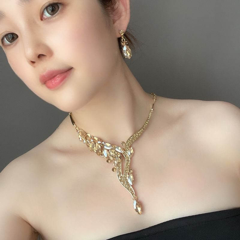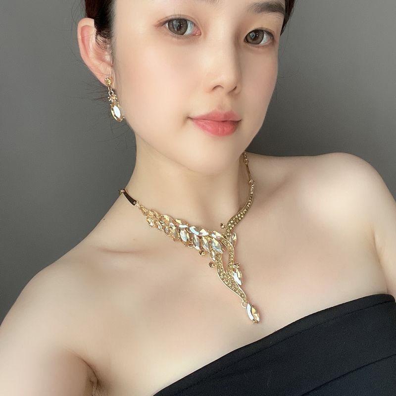 首饰品简约大方欧美时尚简约水晶宝石项链耳环套装礼服宴会女配饰