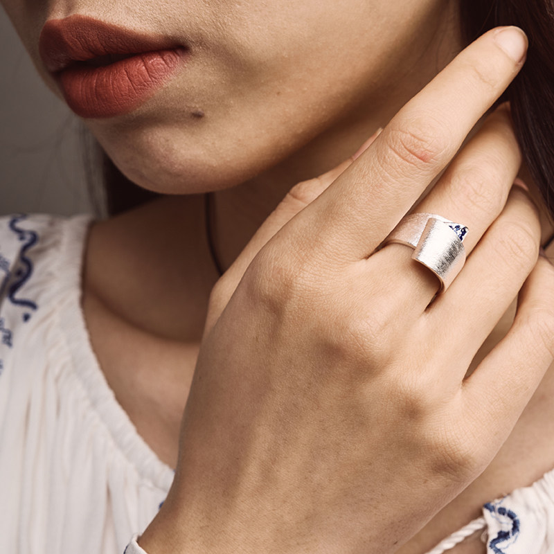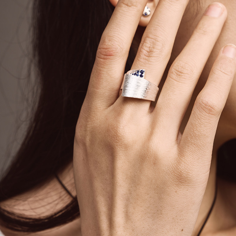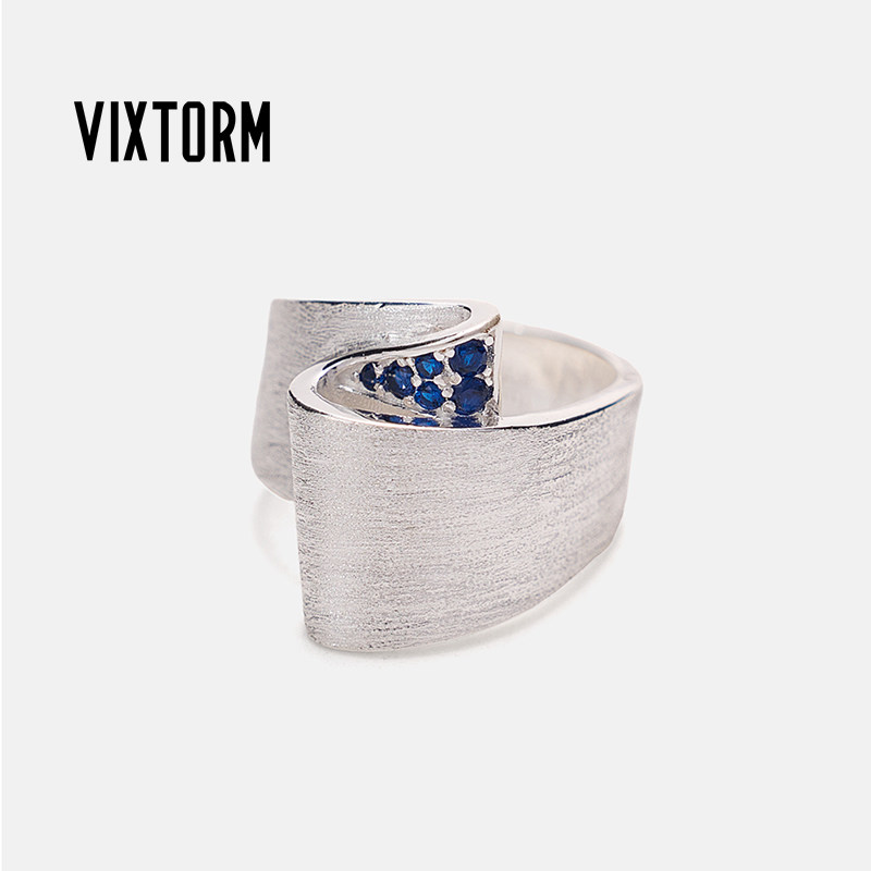 VIXTORM抽象设计优雅风s925银人造蓝宝石质感戒指 镶嵌 银饰Azure